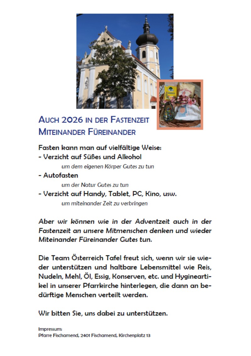 Ab Sonntag 11.1.2026 bis einschließlich Sonntag 22.3.2026 feiern wird die Hl. Messe um 10.00 Uhr in der Dorfkirche.
