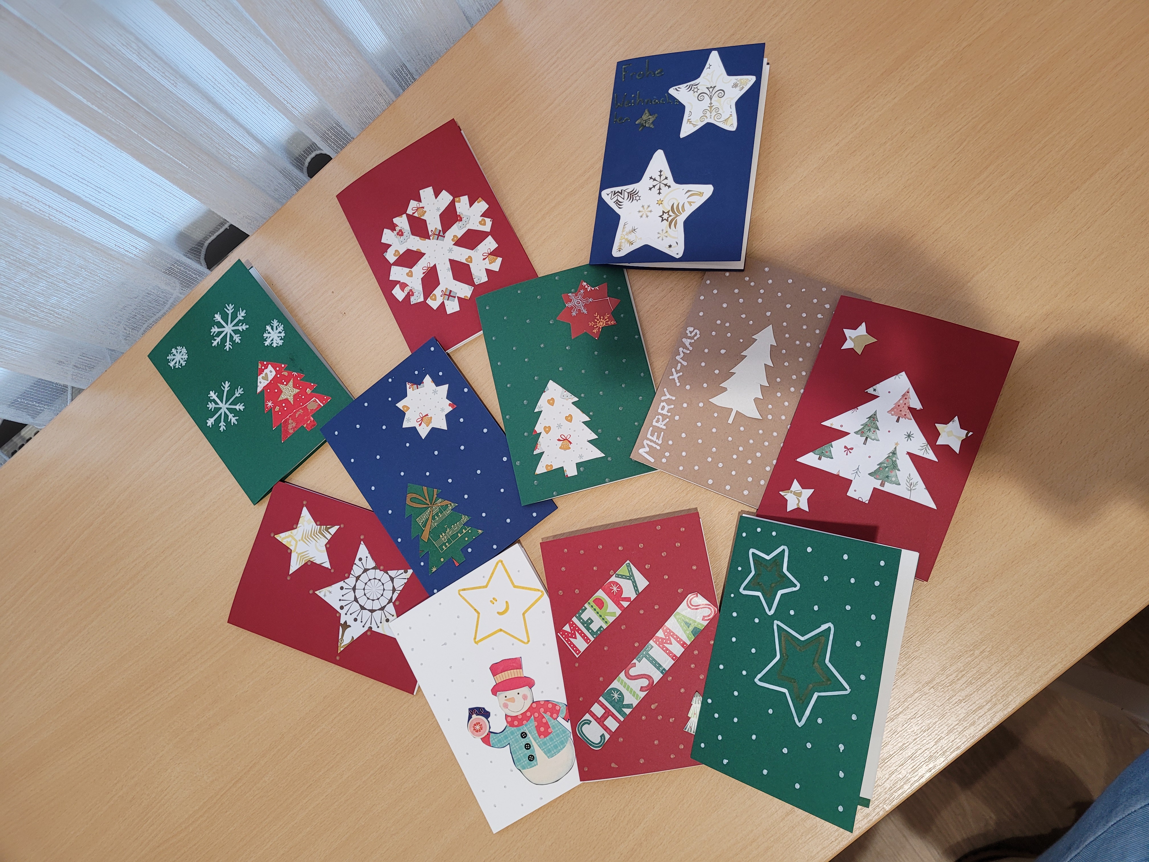 Eines unserer Sozialprojekte war das Basteln von Weihnachtskarten für die Bewohner des Altersheims. Es haben sich immer Kleingruppen im Pfarrheim getroffen und gebastelt.