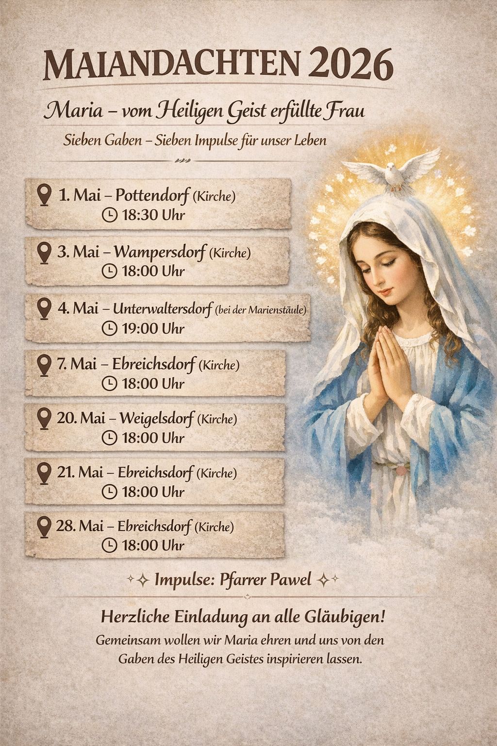 Gemeinsam wollen wir Maria ehren und uns von den Gaben des Heiligen Geistes inspirieren lassen.