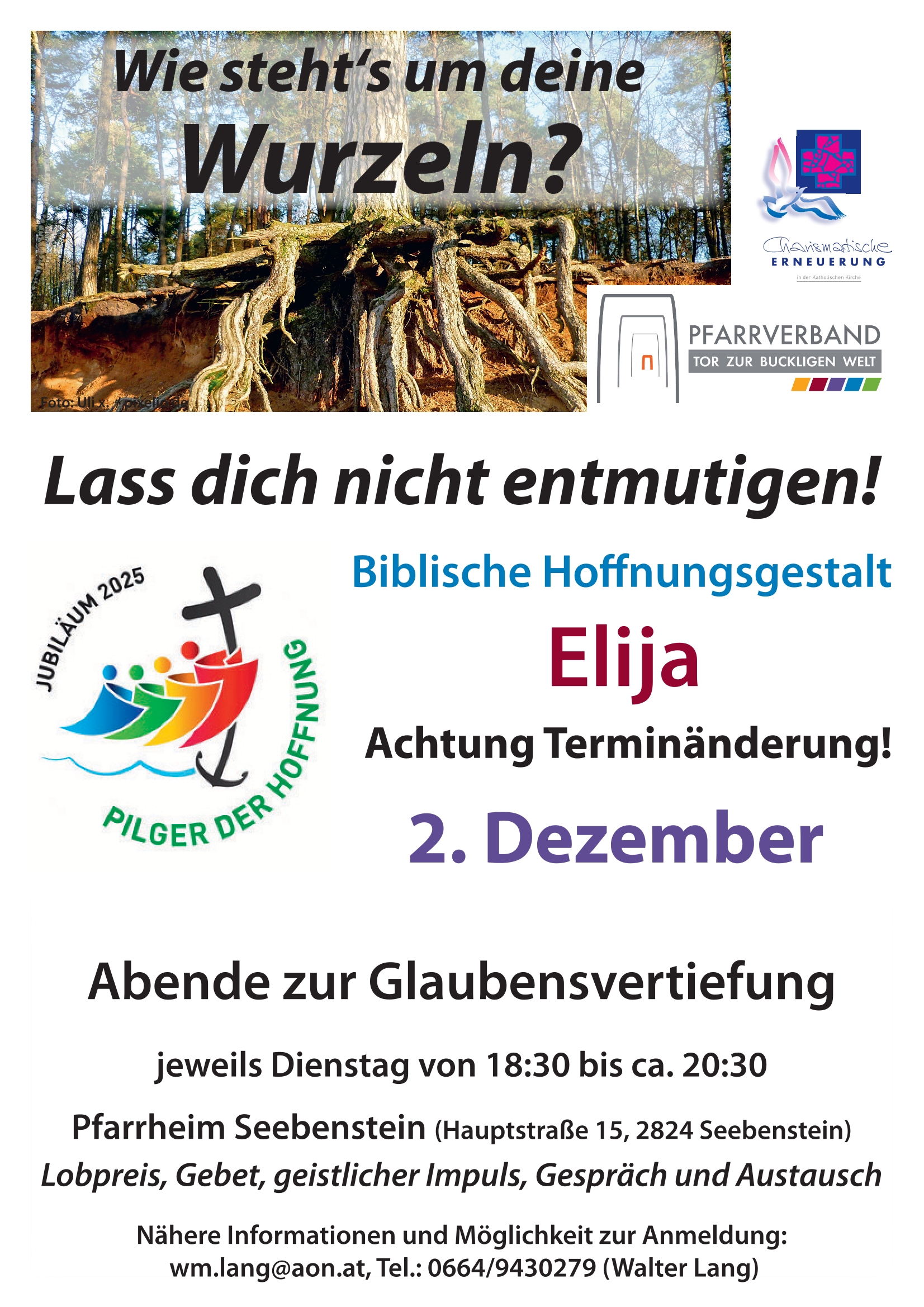 Wie steht´s um deine Wurzeln? - 5. Reihe zur Glaubensvertiefung zum Thema "Biblische Hoffnungsgestalten": Mose - Nehemia - Elija