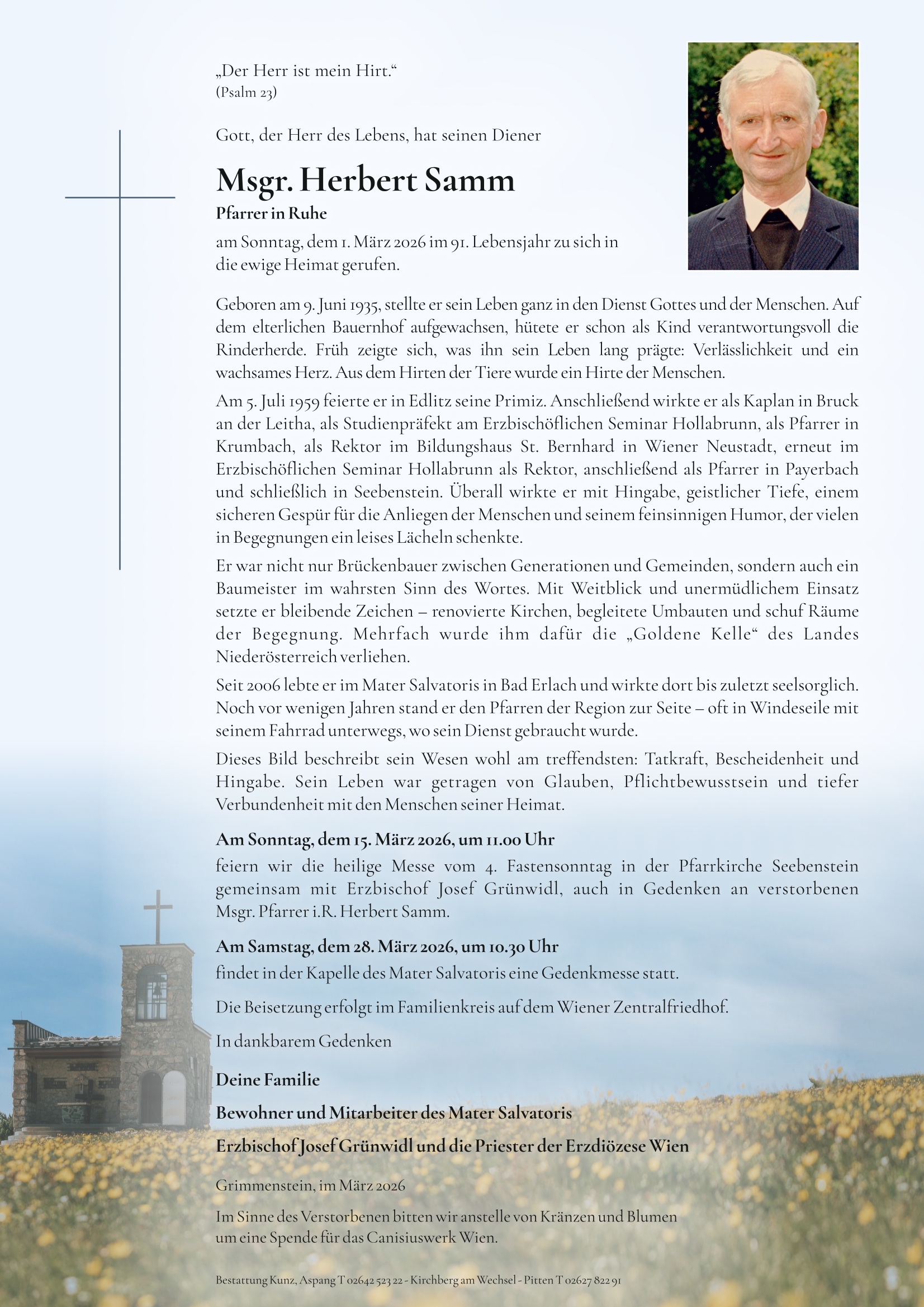 Wir nehmen Abschied von Pfarrer in Ruhe Msgr. Herbert Samm - Danke für dein segensreiches Wirken bei uns!