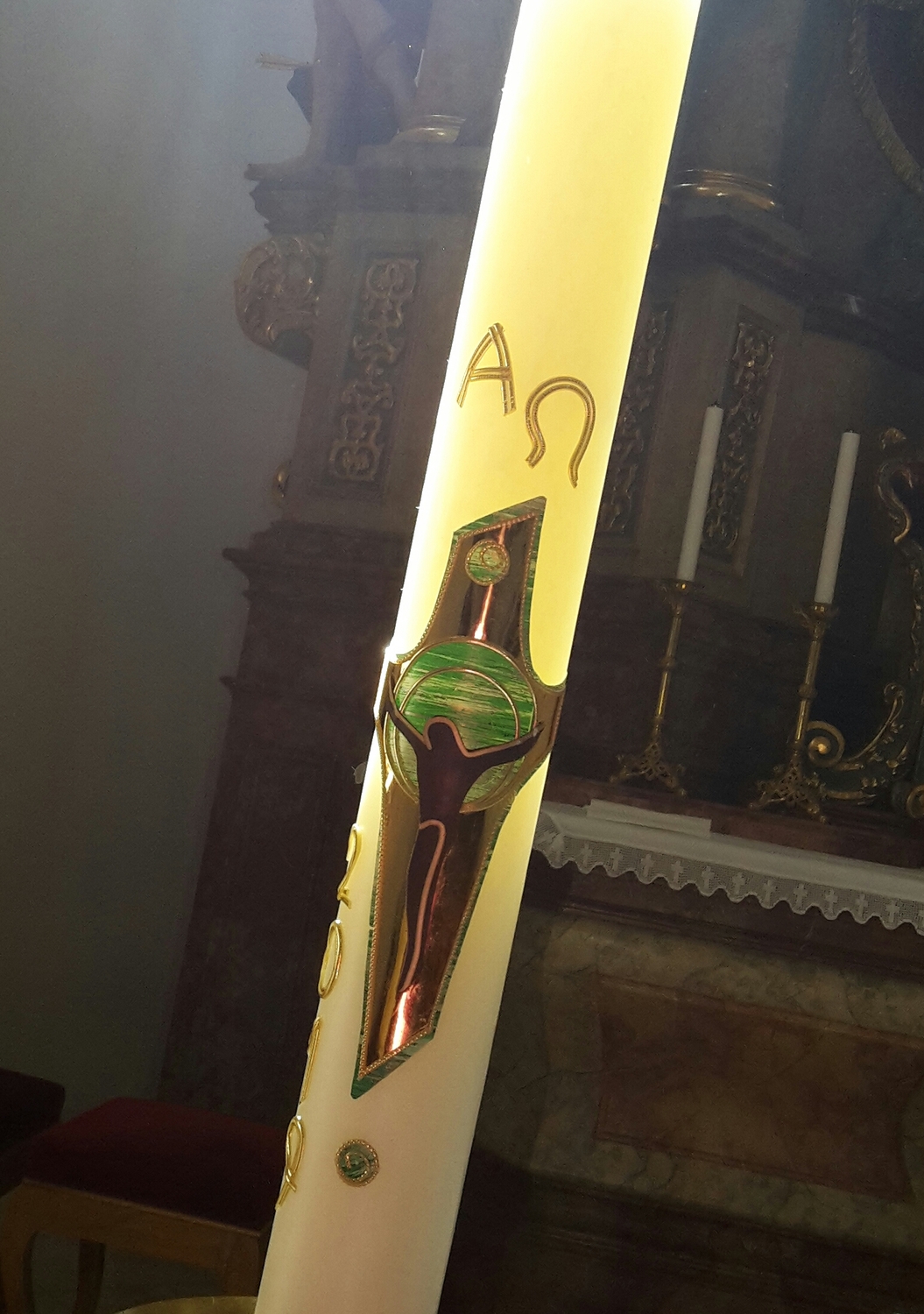 Die Osternacht begann traditionell mit der Segnung des Feuers und dem festlichen Einzug mit der Osterkerze in die unbeleuchtete Pfarrkirche, wo wir eine wunderbare Auferstehungsfeier erleben durften!