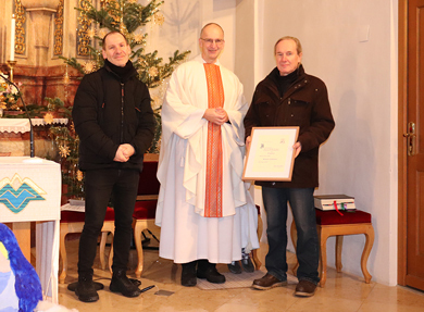 Im Rahmen des Gottesdienstes am Fest der Heiligen Familie bedankten wir uns bei unserem langjährigen Organisten Robert Zehetner sehr herzlich für 50 Jahre Orgeldienst. Pfarrer Gerhard und der stv. Vorsitzendes des PGR, Peter List, überreichten eine Dankesurkunde von Kardinal Schönborn.