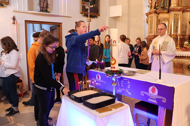 Im Rahmen der Firmvorbereitung fanden auch heuer einige Einheiten gemeinsam mit den Firmlingen aus Bad Erlach statt. So zum Beispiel die Andacht beim Gläsernen Kreuzweg, die Exkursion zur Gemeinschaft Cenacolo und die Feier mit den Eltern und Paten in der Pfarrkirche.