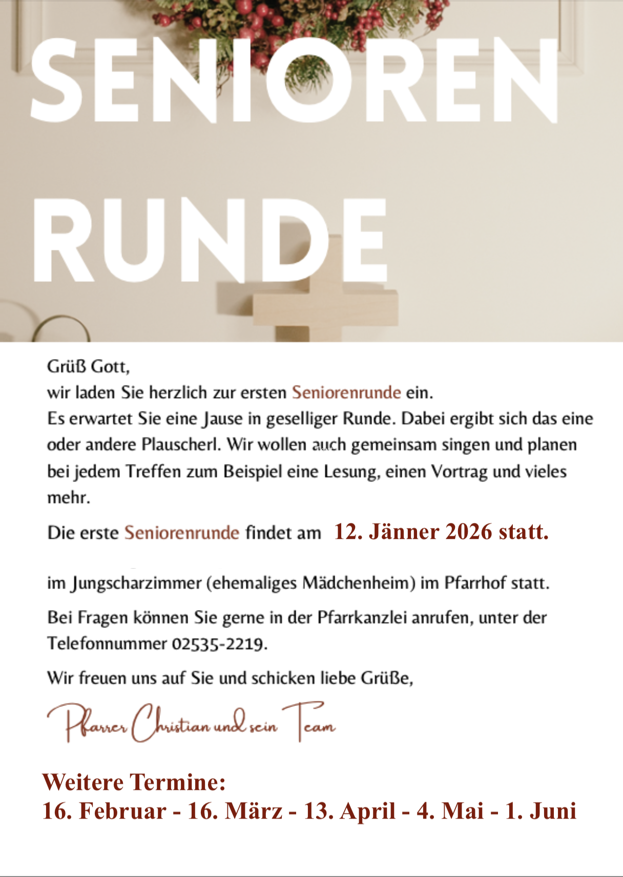 Kontakt zu: Pfarren, Orden, Gemeinschaften ...