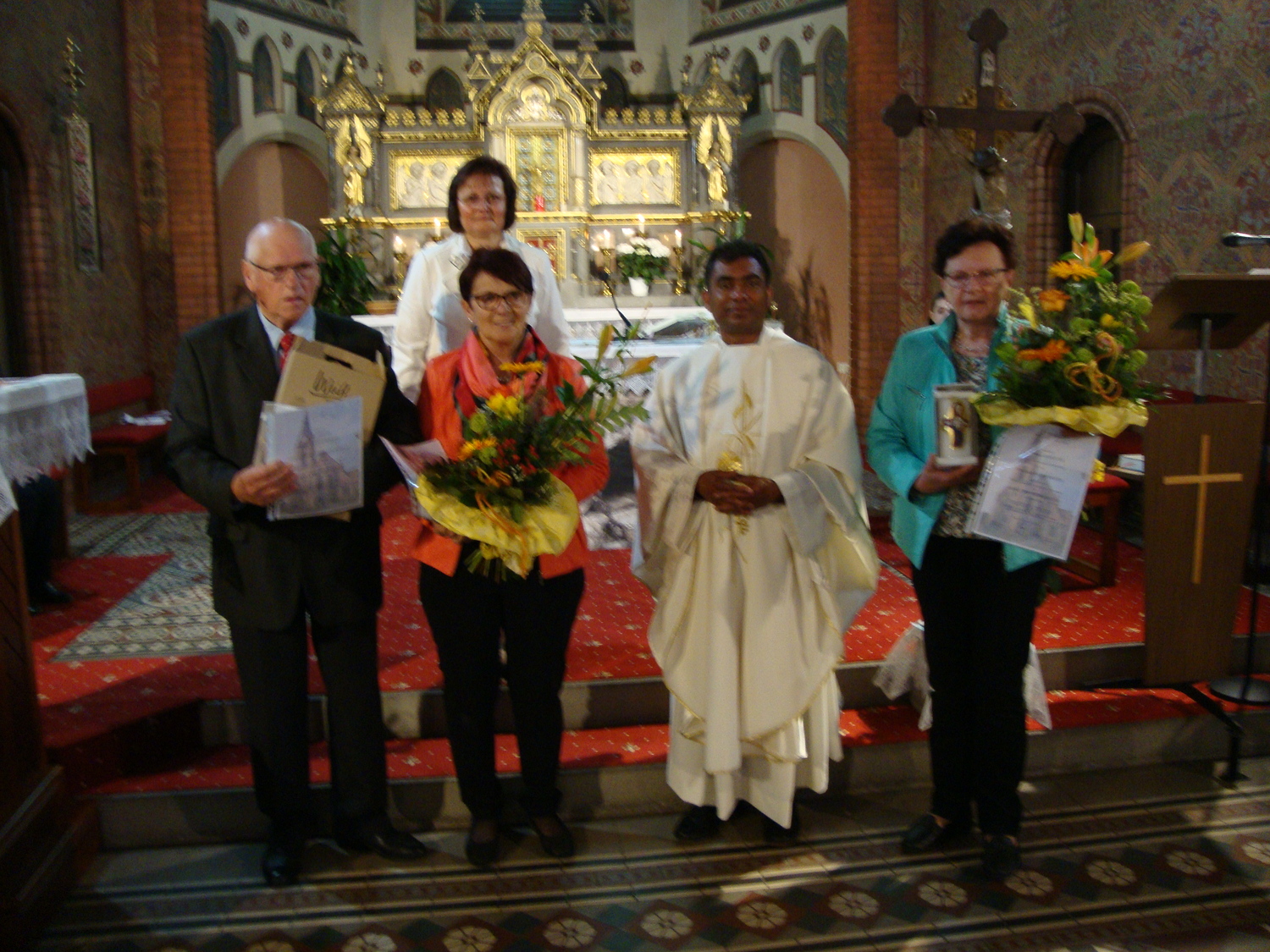Jahrelang sorgten sich Frau Lehner und Frau Bahr für den Blumenschmuck in der Pfarrkirche. Im Anschluss an die Sonntagsmesse dankte Ihnen Pfarrer P. Sabu Mathew für Ihren Dienst.