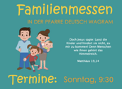Einmal im Monat findet bei uns am Sonntag eine Familienmesse statt. Das heißt: Kinder und Familien werden besonders in den Gottesdienst eingebunden: es singt der Kinderchor oder unsere KiKi Band, es gibt eine kindgerechte Predigt (meistens von Pastoralassistentin Andrea Lentner oder Mitgliedern des Familienmessteams), und im Anschluss gibt es einen Pfarrkaffee mit Kinderprogramm.