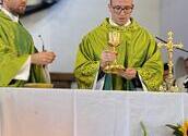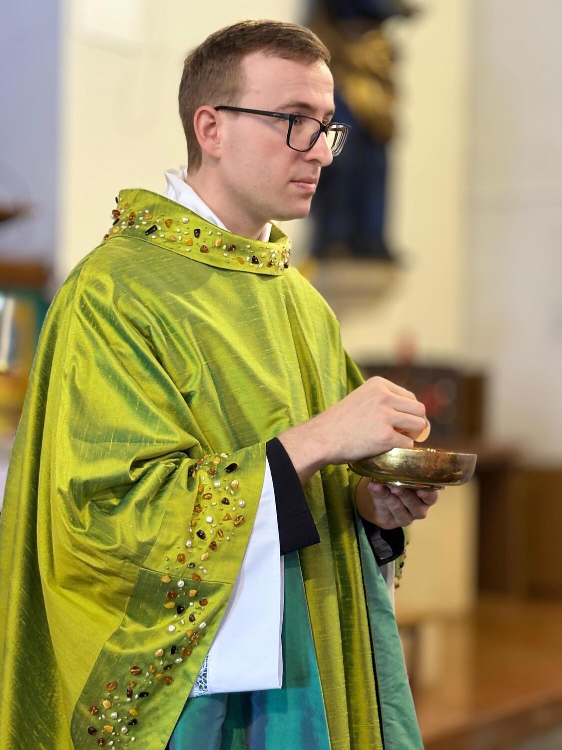 Als Geschenk überreichte die Pfarrgemeinde eine Kasel, ein festliches Priestergewand, das passend zu seiner Dalmatik gewählt wurde. Wir wünschen P. Elias damit alles Gute, Gottes reichen Segen und viel Freude für seinen priesterlichen Dienst!
