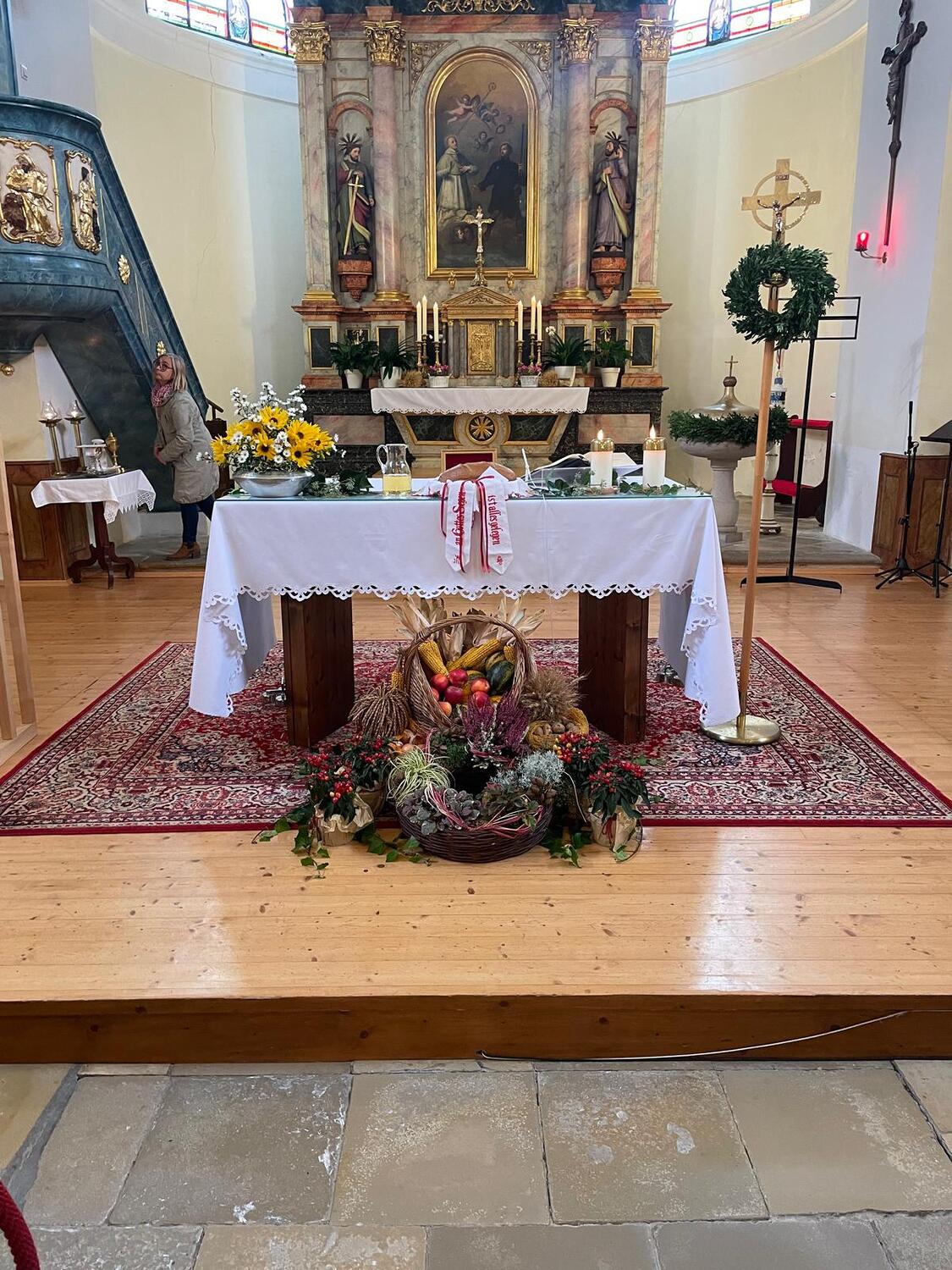 Erntedank wurde mit einer festlichen Messe umrahmt vom MV Ebenthal gefeiert. Danach gab es im Schüttkasten Wildgulasch als "herbstliches Mittagsmenü".