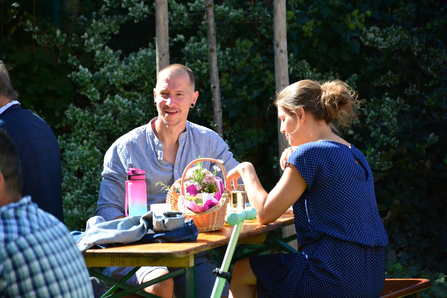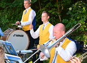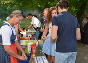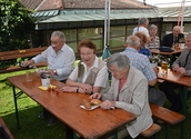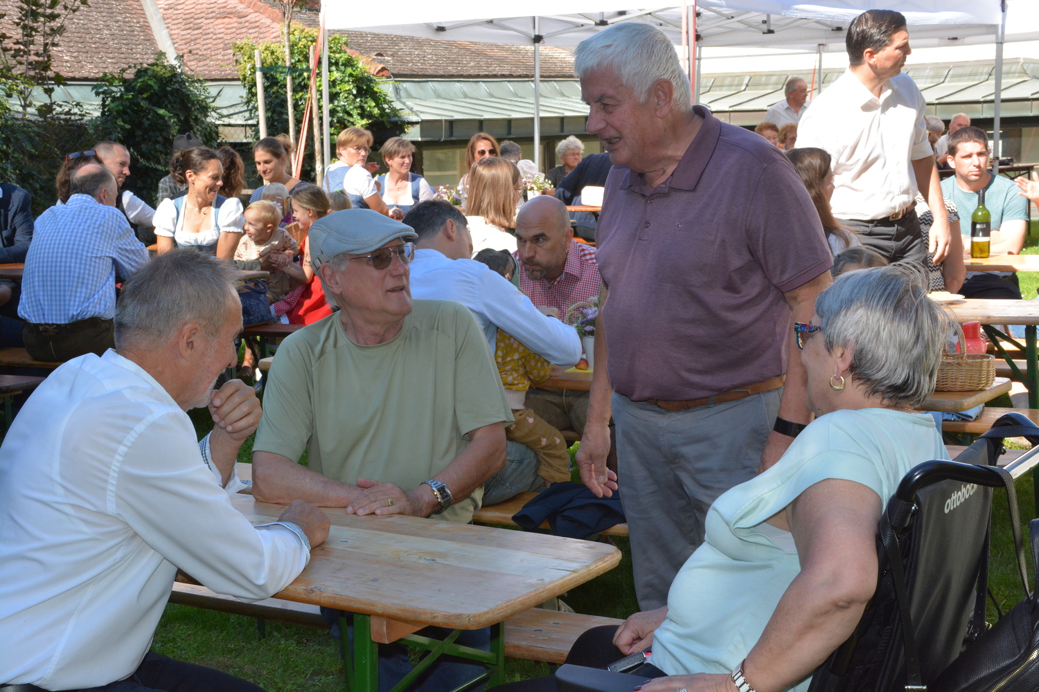 Im Pfarrgarten erwartete uns dann der MV Großrußbach, der zum Frühschoppen mit warmem Mittagessen, kühlen Getränken und hausgemachten Mehlspeisen aufspielte.