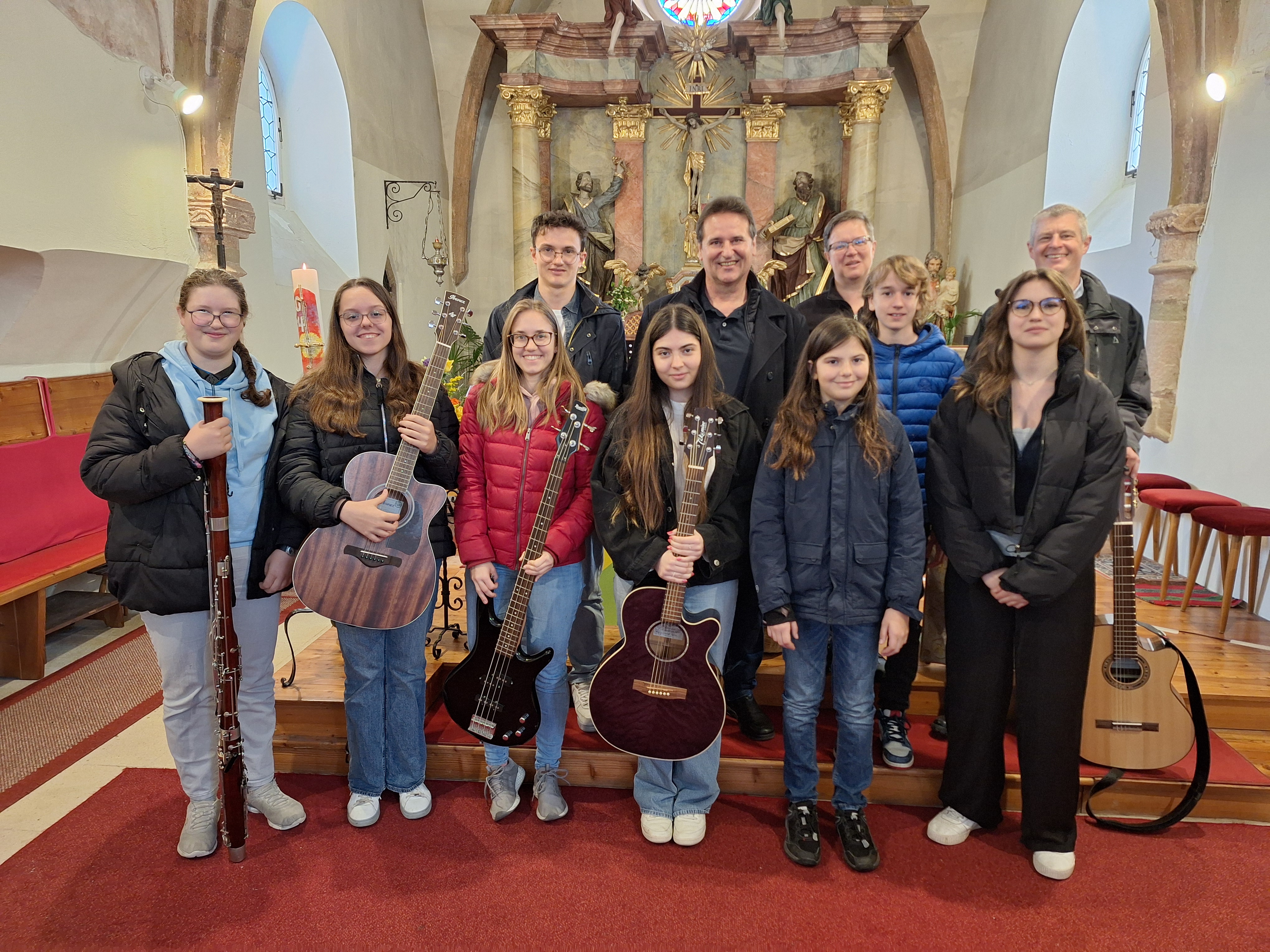 Neben der Orgel kommen auch immer mehr andere Musikinstrumente zum Erklingen. Wir haben das besondere Glück, dass ein Sonntag im Monat immer von der Musikgruppe rhythmisch gestaltet wird. Die Musikgruppe setzt sich aus begeisterten HobbymusikerInnen aller Altersgruppen zusammen. Die Freude am gemeinsamen Musizieren steht dabei im Vordergrund. Von der Querflöte, Klarinette, Fagott über Geige, Gitarre, E-Bass, Keyboard, Rhythmusinstrumenten bis zu Gesang ist alles vertreten. Somit trägt die Musikgruppe zu einem bunten, vielfältigen und lebendigen Pfarrleben bei.