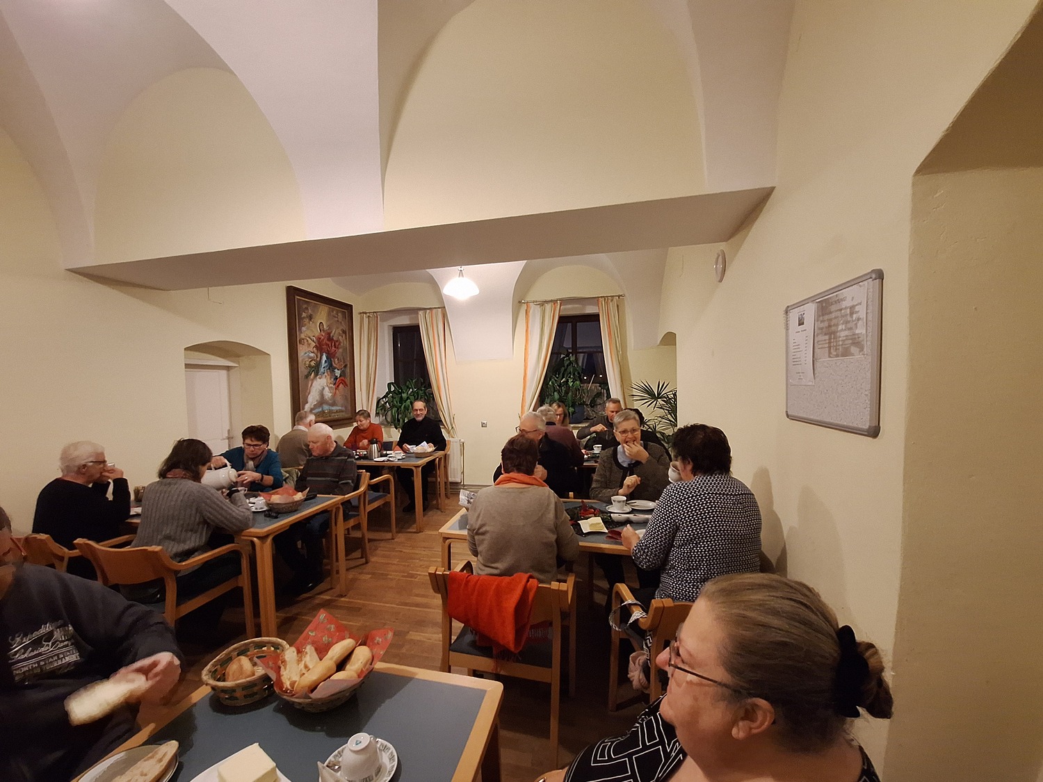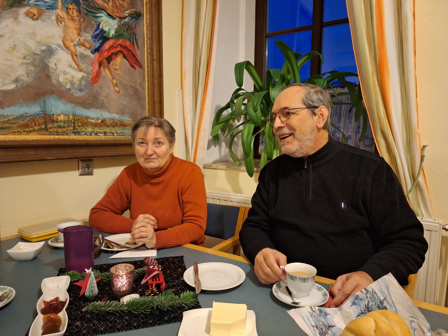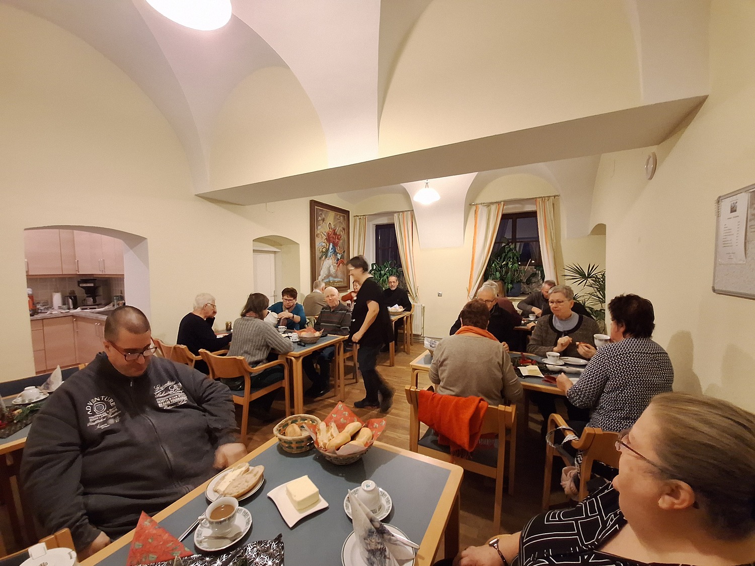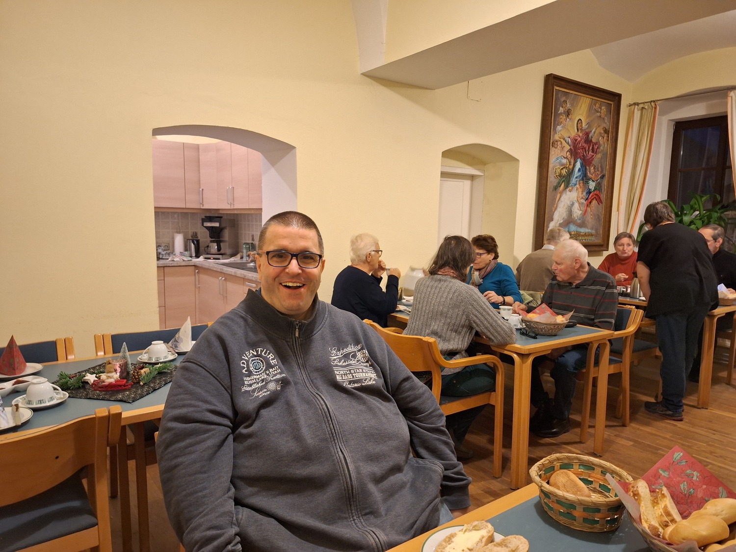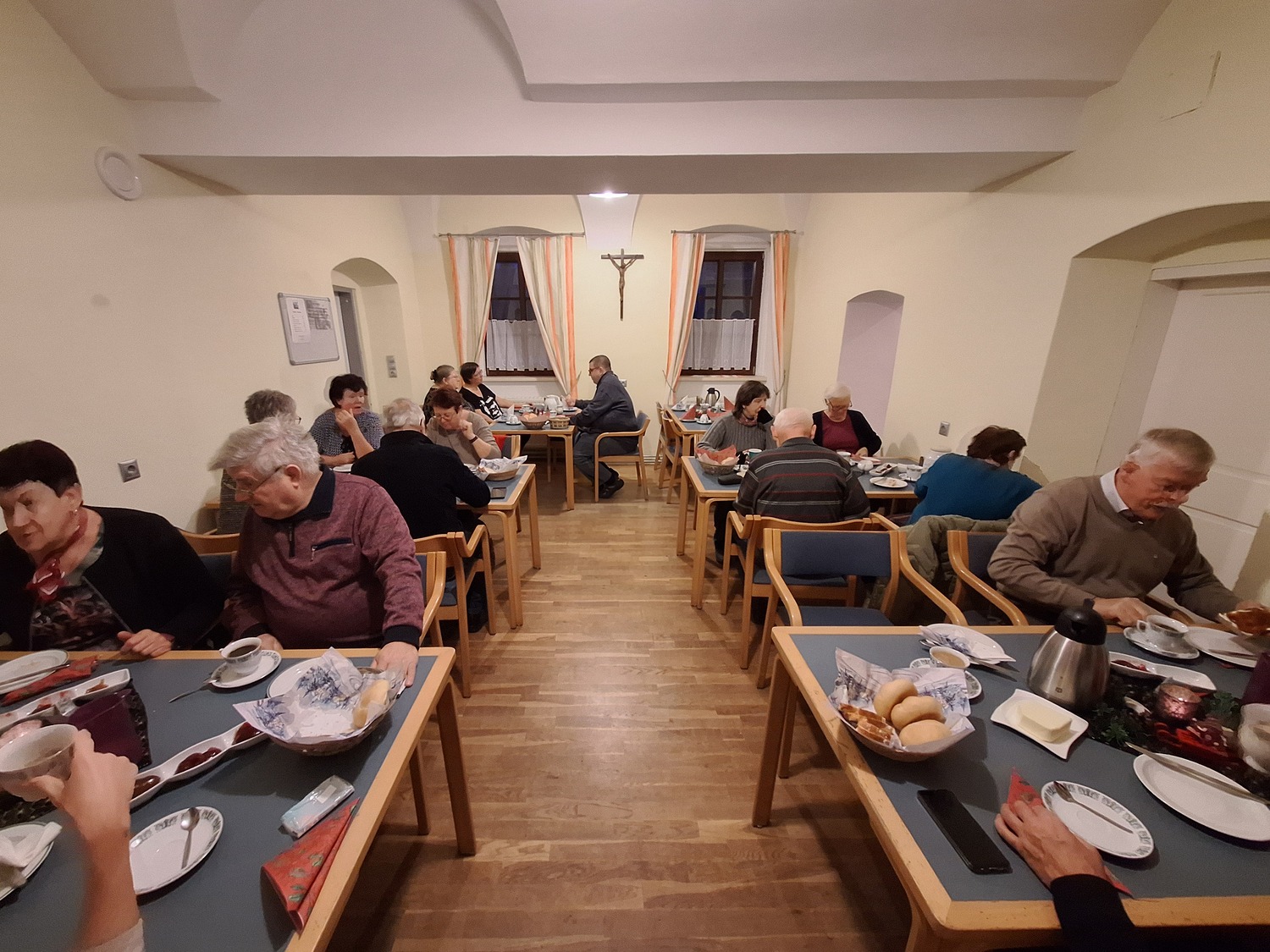 Nach der besonderen Messe lud der PGR die anwesenden Personen zu einem Frühstück im Pfarrhof. Sigrid Stach und Gertrude Gottschacher setzen die Stimmung fort und servierten uns ein wunderbares Frühstück auf adventlich dekorierten Tischen.