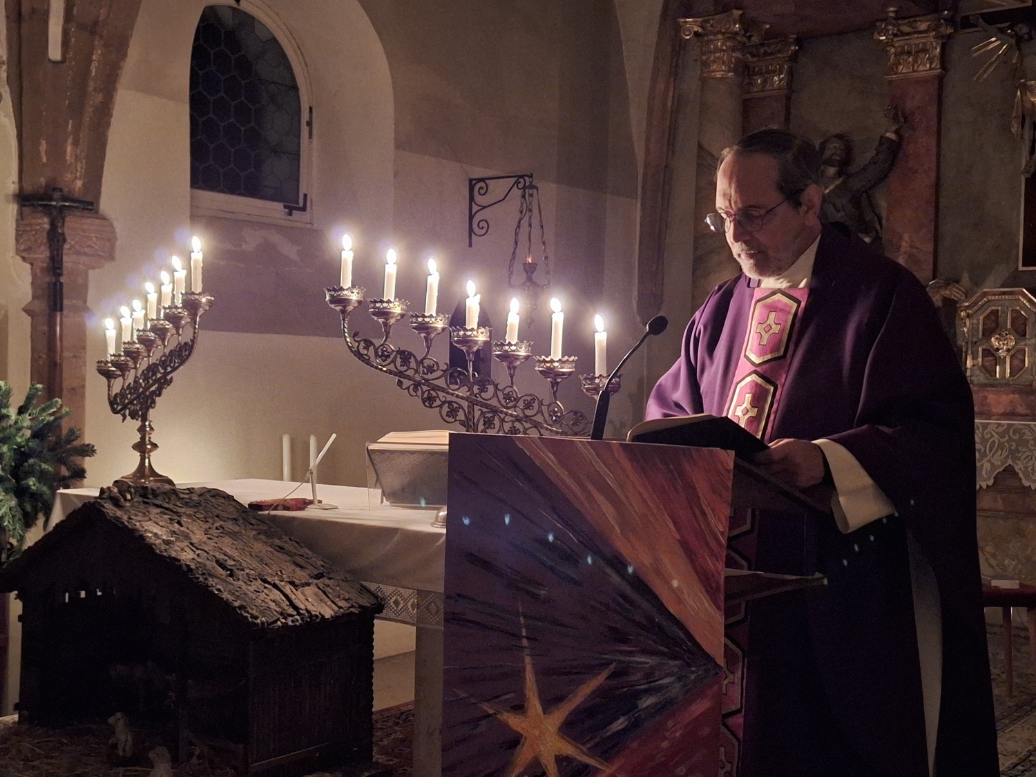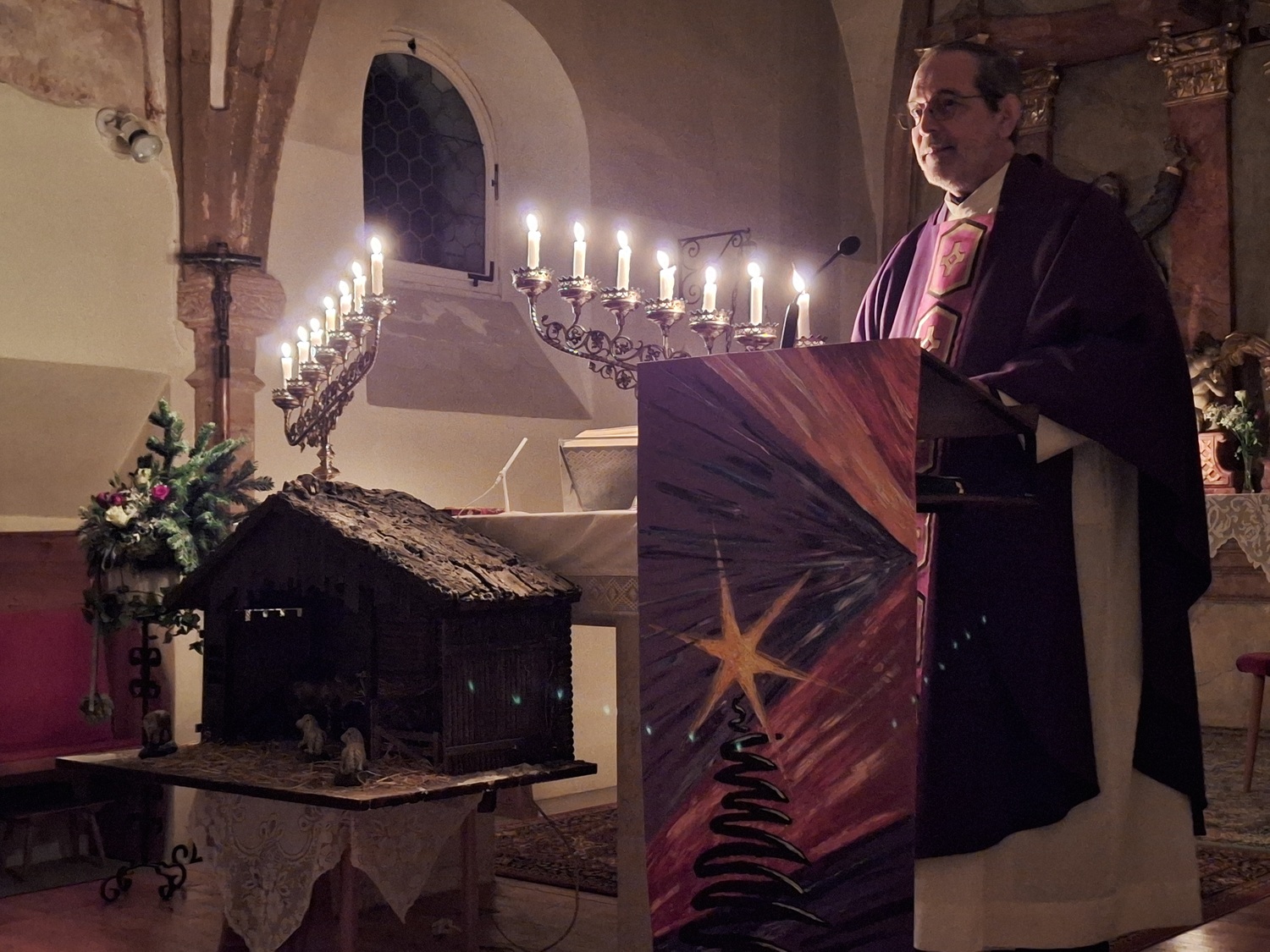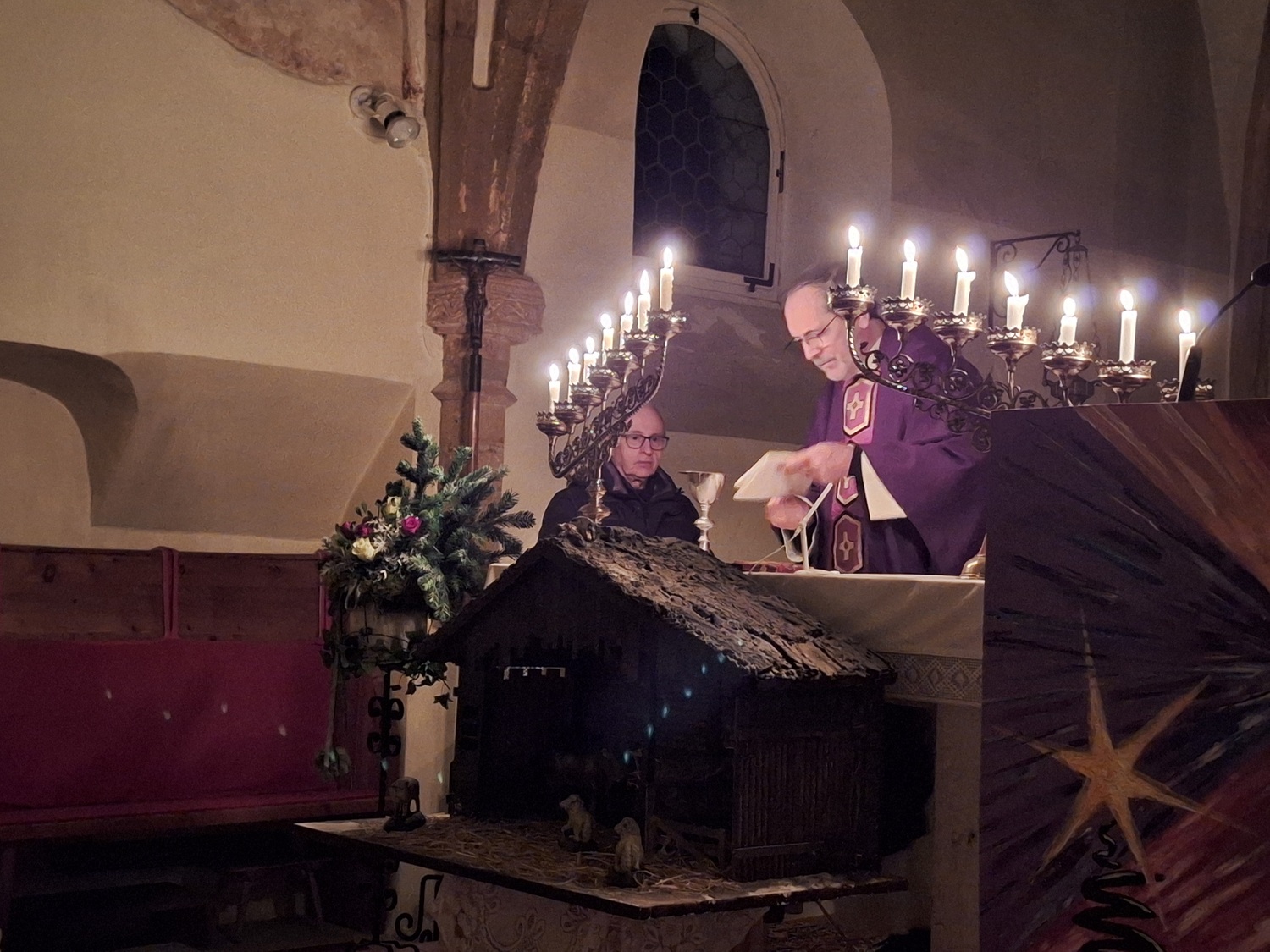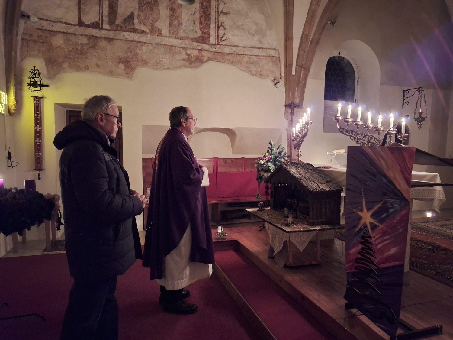 Frühaufsteher*innen wurden am 6. Dezember in der Pfarre Neuaigen mit einer stimmungsvollen Rorate belohnt. Markus Fallbacher brillierte nach längerer Abwesenheit wieder eindrucksvoll auf der Orgel in der von Marianne und Heinz Bader idyllisch illuminierten Kirche. Bei Kerzenschein zelebrierte Pater Adrian Boboruta diese Messe und erklärte uns in der Predigt den Bezug von Jesus und dem Licht der Kerzen in der Dunkelheit so wie sie in der Kirche gerade zu sehen waren.