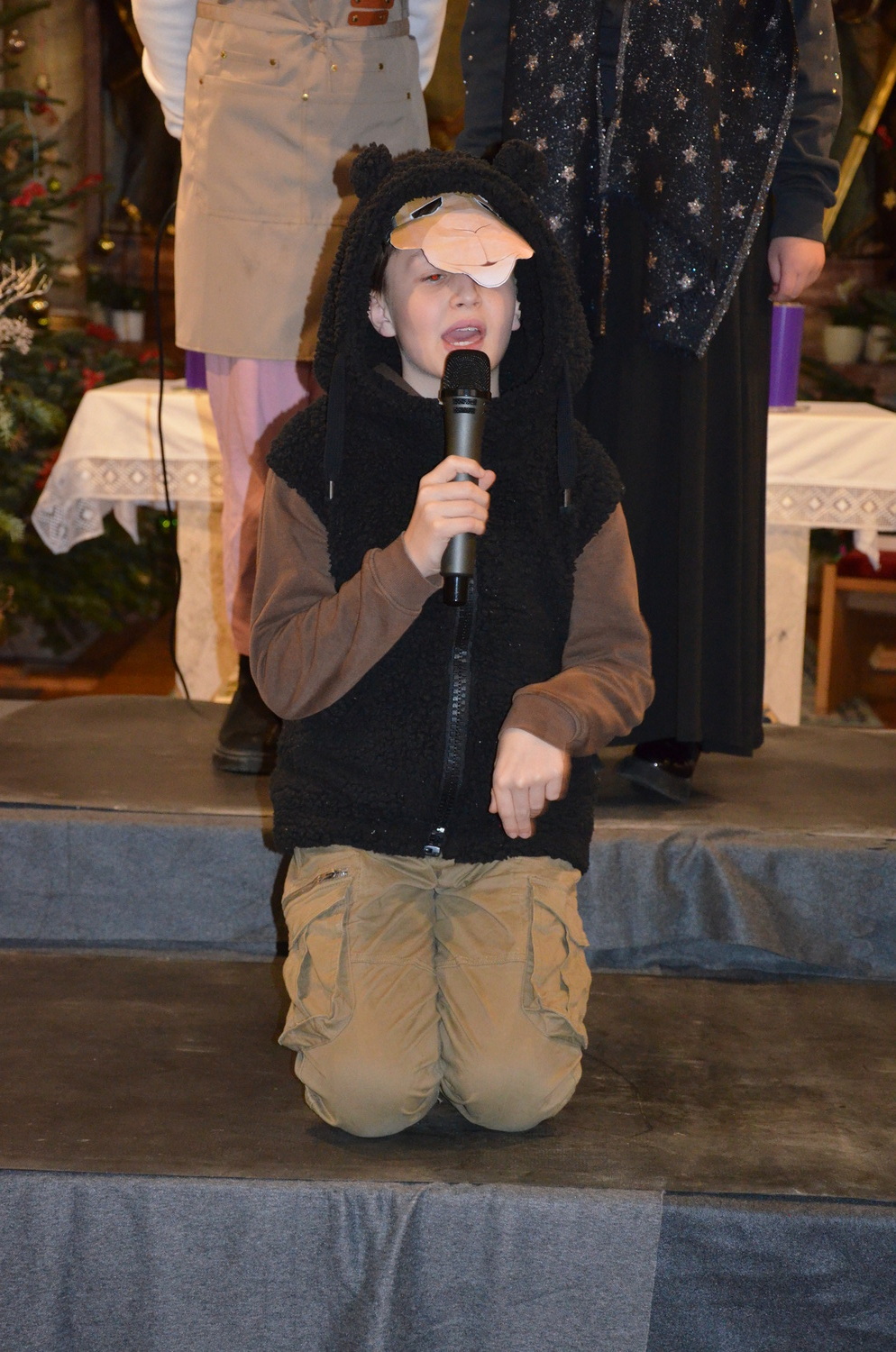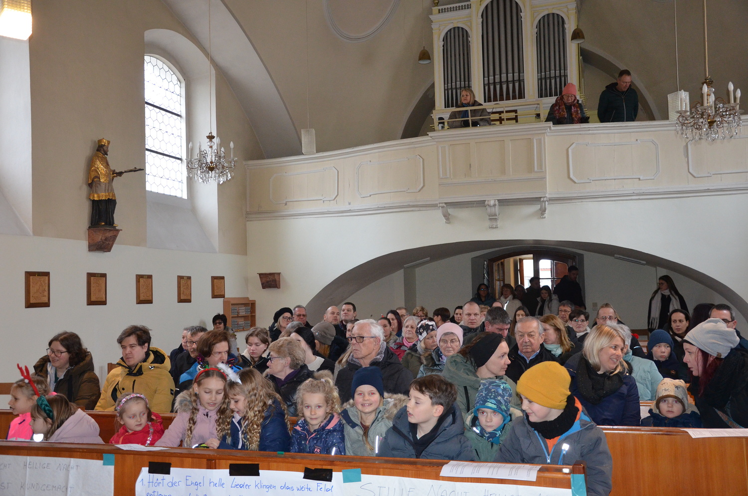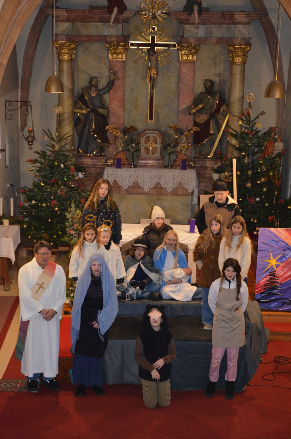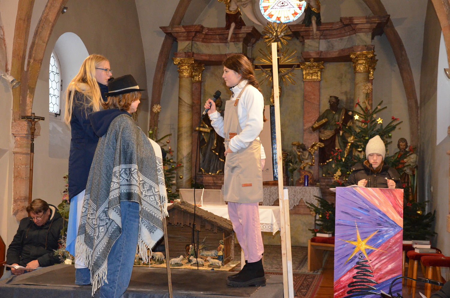 Die Weihnachtgeschichte wurde aus der Perspektive des Wirtes von Betlehem, der das Gasthaus zum Kamel betreibt erzählt. Besinnlich und humorvoll konnten sich die Besucher*innen viele junge Familien mit ihren Kindern auf das Weihnachtsfest einstimmen. Besonders gefreut hat uns, dass unsere Kirche wieder einmal bis zum letzten Platz gefüllt war. Mitgeholfen haben damit alles funktionierte Rene und Vali Taumberger, Sigrid und Wolfgang Stach und Diakon Hans Wachter.