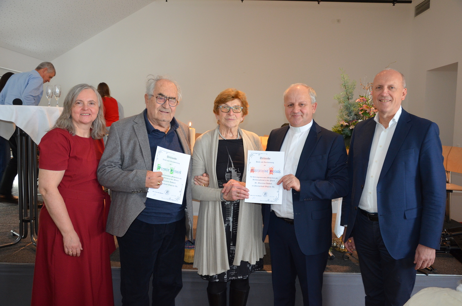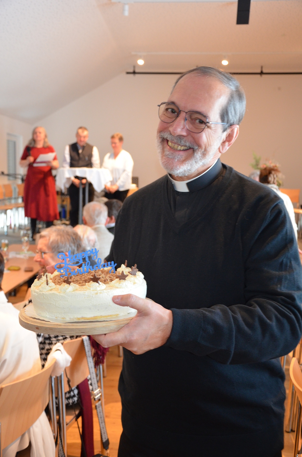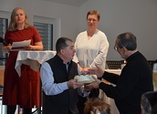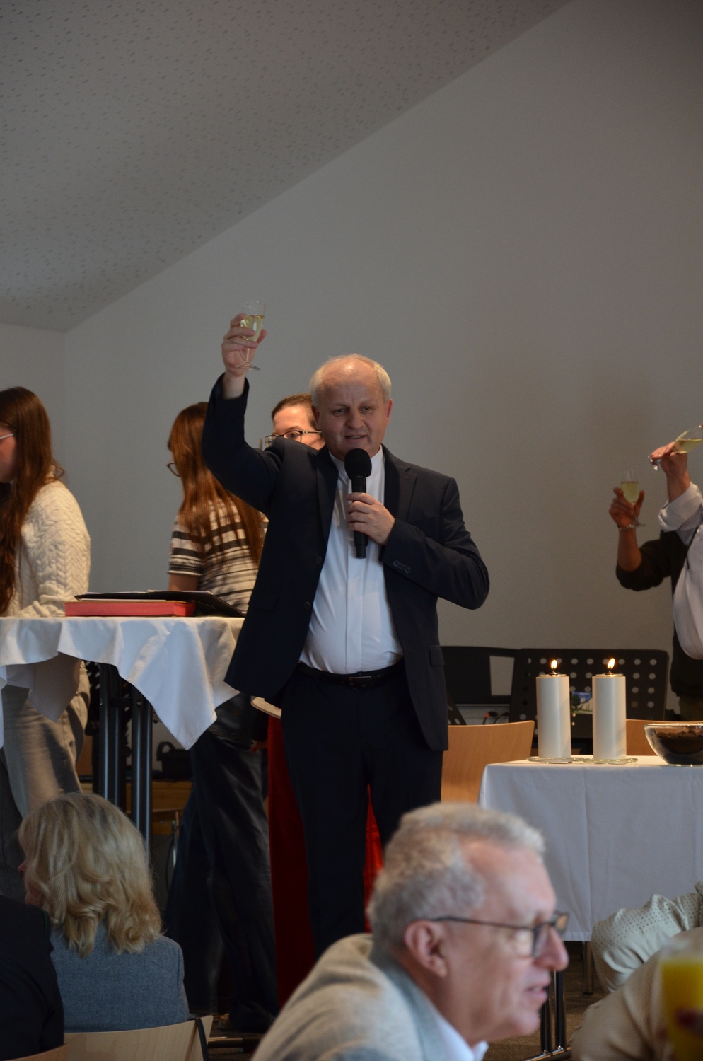Beim anschließenden Sektempfang bedankte Pfarrer Liviu sich bei den ehrenamtlichen Mitarbeiter*innen, welche sich ganz selbstverständlich in den Dienst der guten Sache unserer Pfarrgemeinde stellen. Er betonte ebenfalls, dass in einem mit Gott geplantes Jahr Zeit - nicht zum Druck, sondern Zeit - zu Gnade wird. Auch der Pfarrverbandsrat begrüßte die Anwesenden und gab einen Rückblick auf die Aktivitäten im letzten Jahr, auf das im neuen Jahr Geplante, bedankte sich bei allen Aktiven in den Pfarren und beim Pastoralteam.