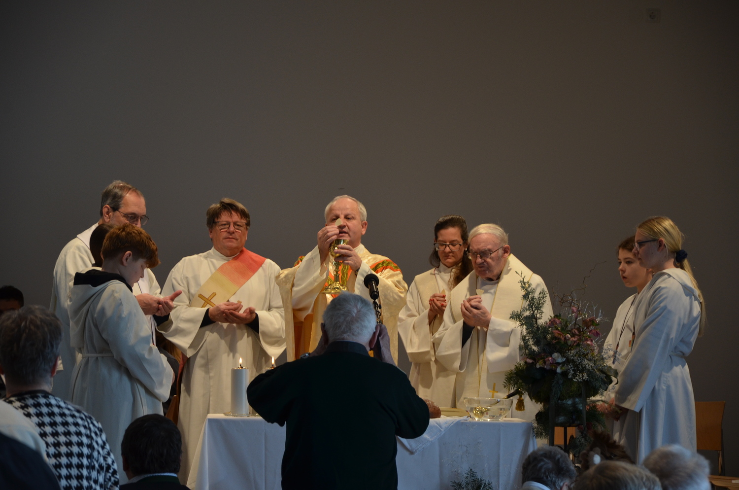 Der 3. Neujahrsempfang unseres Pfarrverbandes Wagram Au fand am 11.1.2026 im VAZ Neuaigen statt. Viele aus den fünf Pfarren waren gekommen, um das Jahr 2026 mit einem gemeinsamen Gottesdienst zu beginnen. Pfarrer Liviu Balascuti zelebrierte gemeinsam mit Kaplan Adrian Boboruta, Altpfarrer Roland Moser, Diakon Hans Wachter und PAss Angelika Eberand die Hl. Messe, welche von der Musikgruppe O_M_TSCHI musikalisch gestaltet wurde.