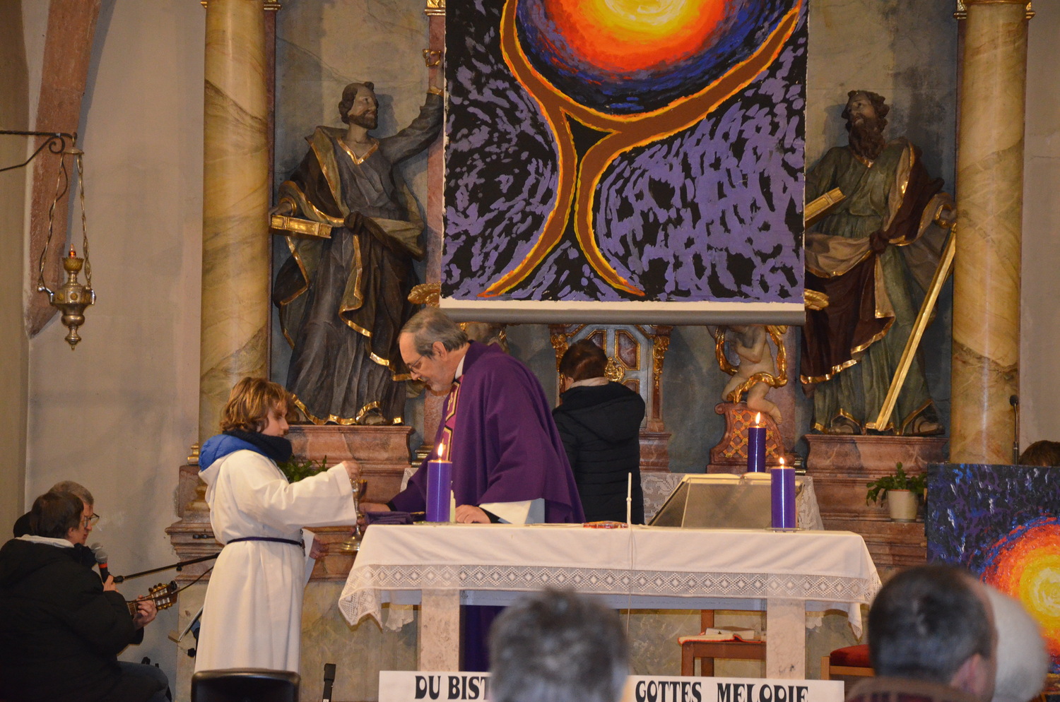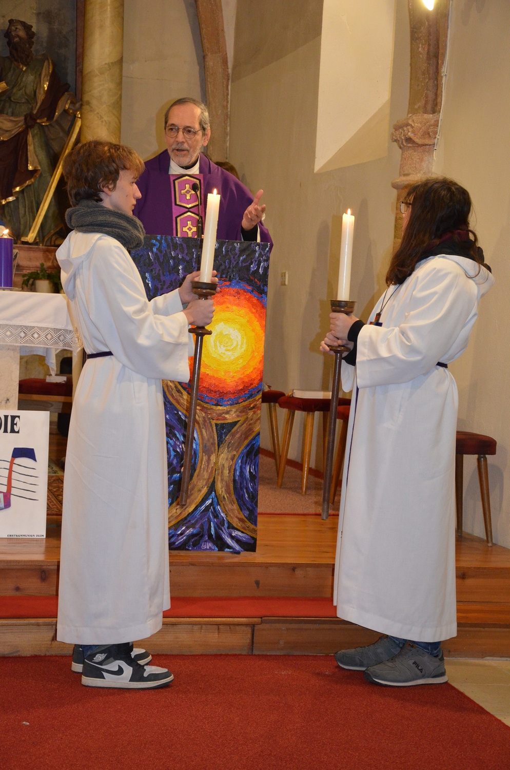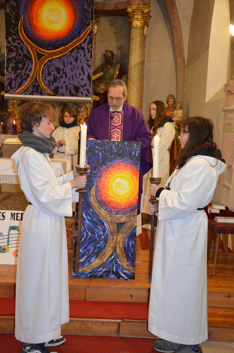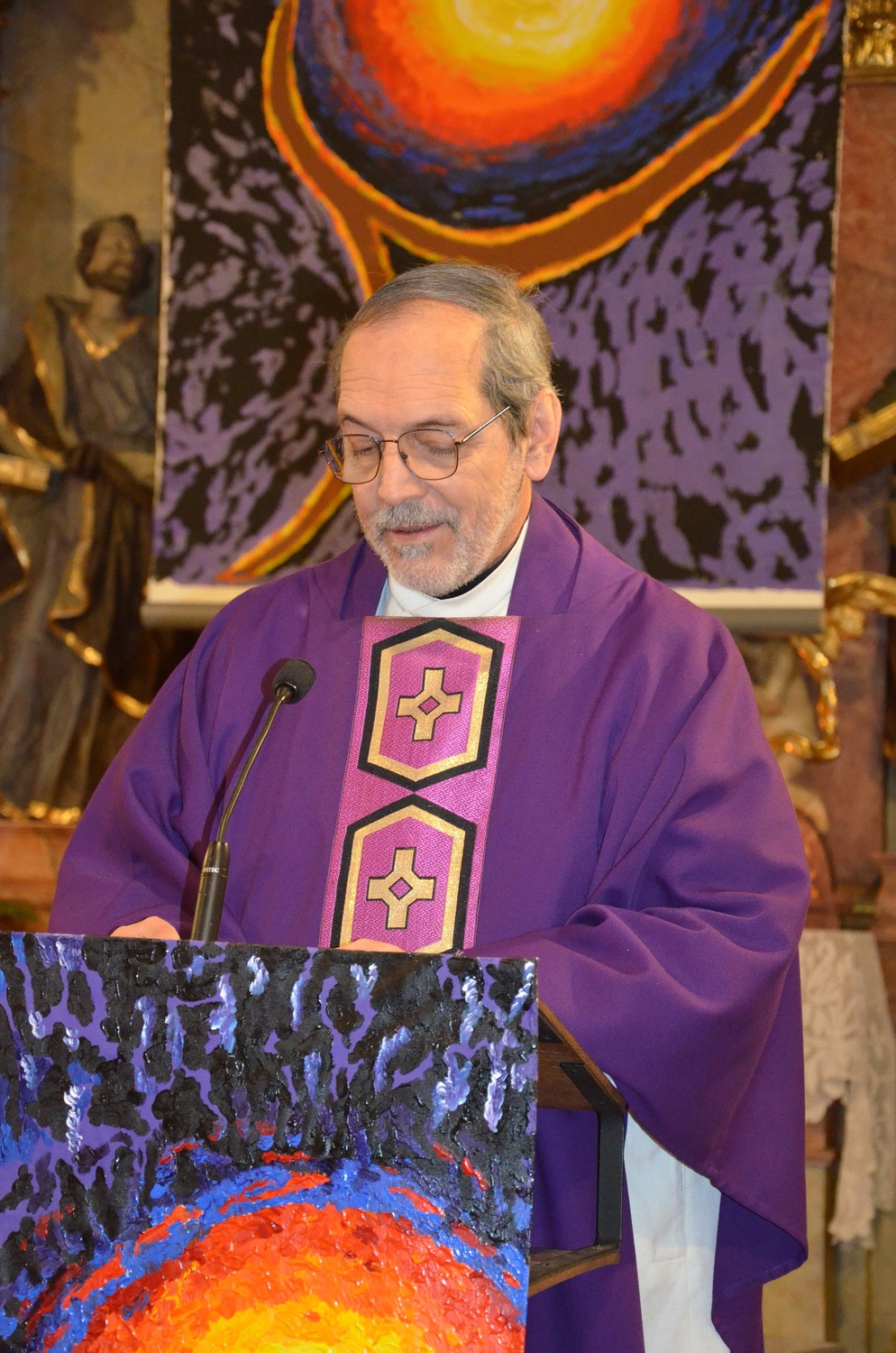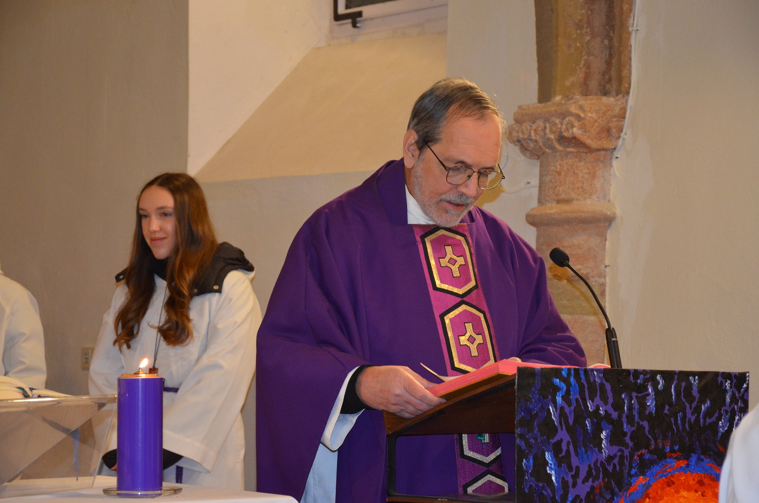 In diesem Jahr feierte Kaplan Adrian Boboruta mit uns die hl. Messe. In der Mitte des Gottesdienstes segnete er die Asche und spendete das Aschenkreuz mit den Worten „Kehre um und glaube an das Evangelium“. Ein schönes Zeichen der Gemeinschaft war es, als er selbst das Aschenkreuz von unserer ehemaligen Pastoralassistentin Helma Wachter empfing.