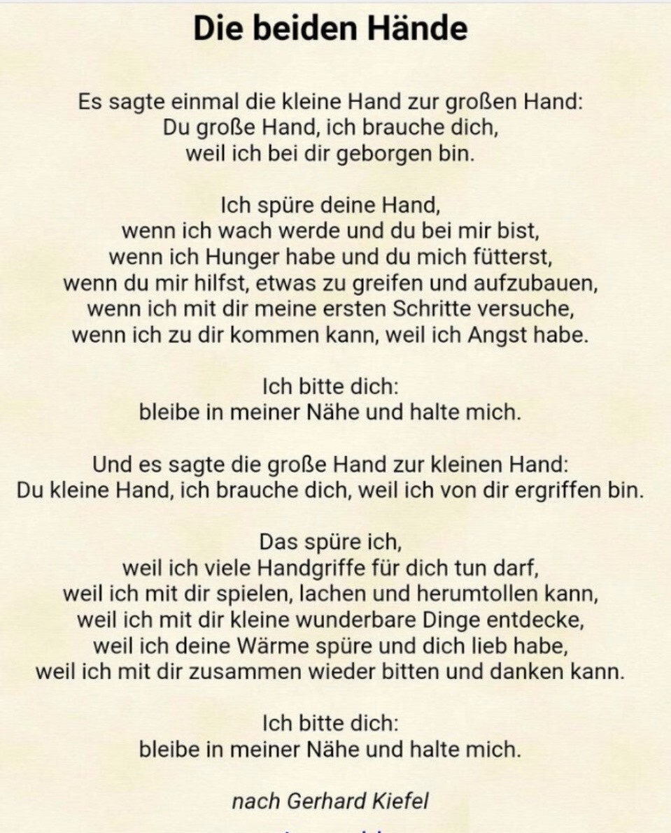 Wir hörten einen schönen Text von der großen und der kleinen Hand (siehe Foto) und mit den Kindern wurde erarbeitet, was in der Fastenzeit wichtig ist: teilen, fasten, verzichten, trösten … eben schauen, dass unsere Beziehung zu uns selbst, zu unseren Mitmenschen und zu Gott wieder in Schwung kommt. Damit wir dann am Ziel des Weges, zu Ostern – das Leben selbst feiern können.