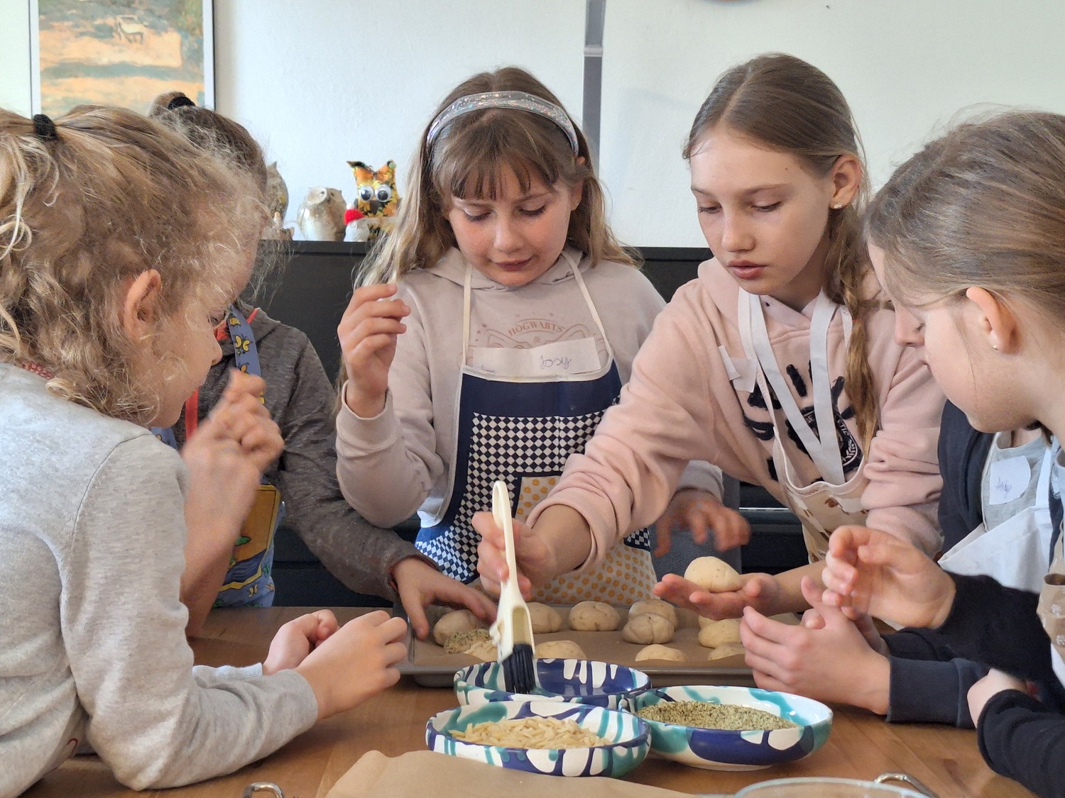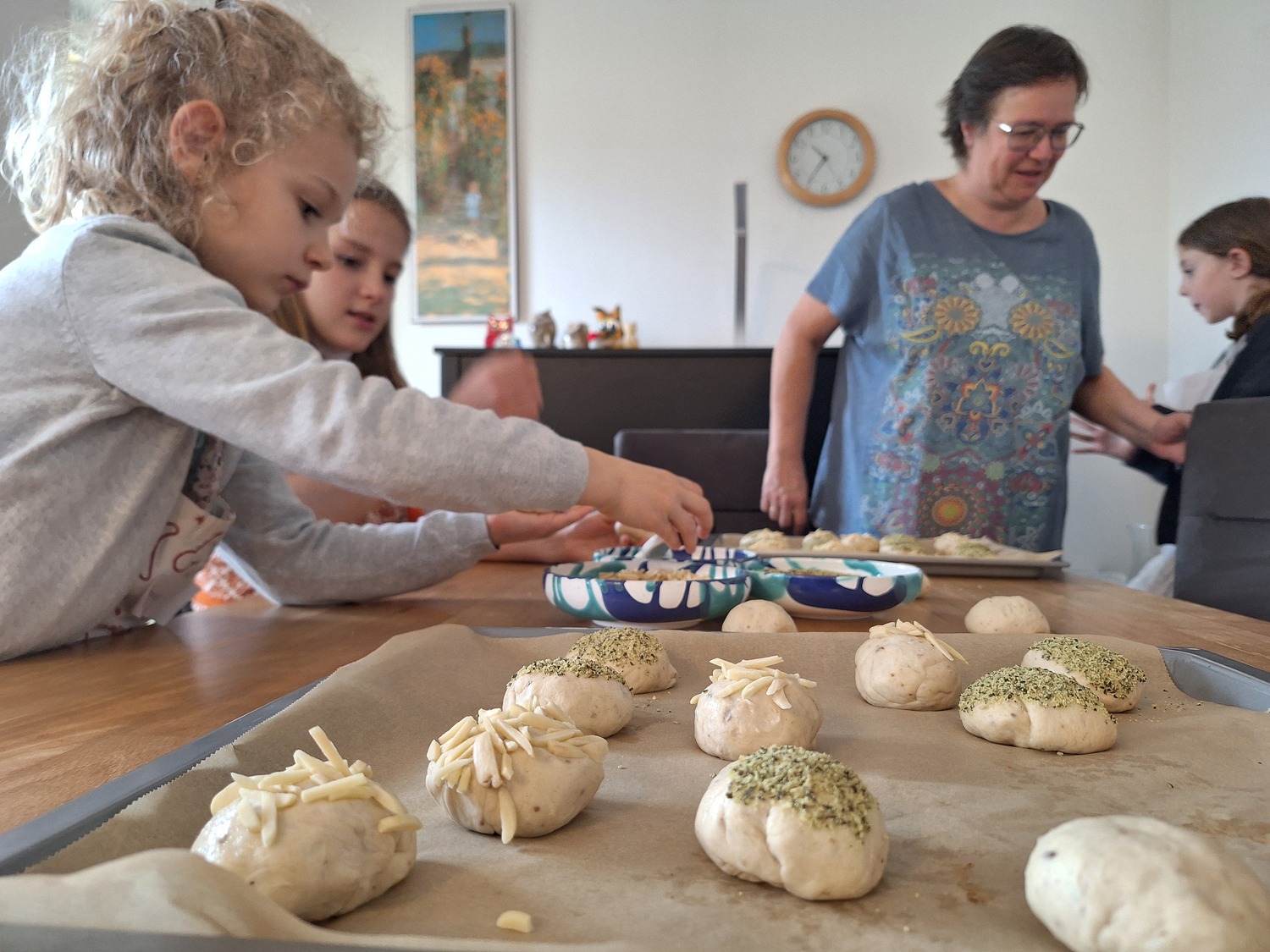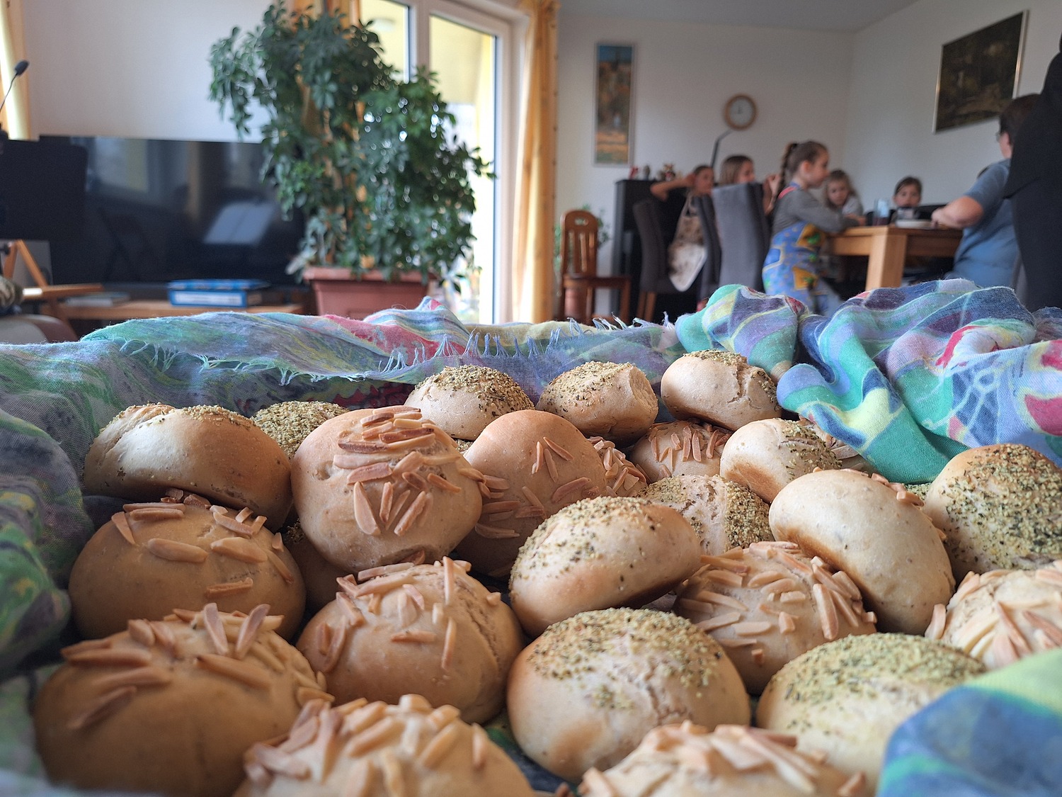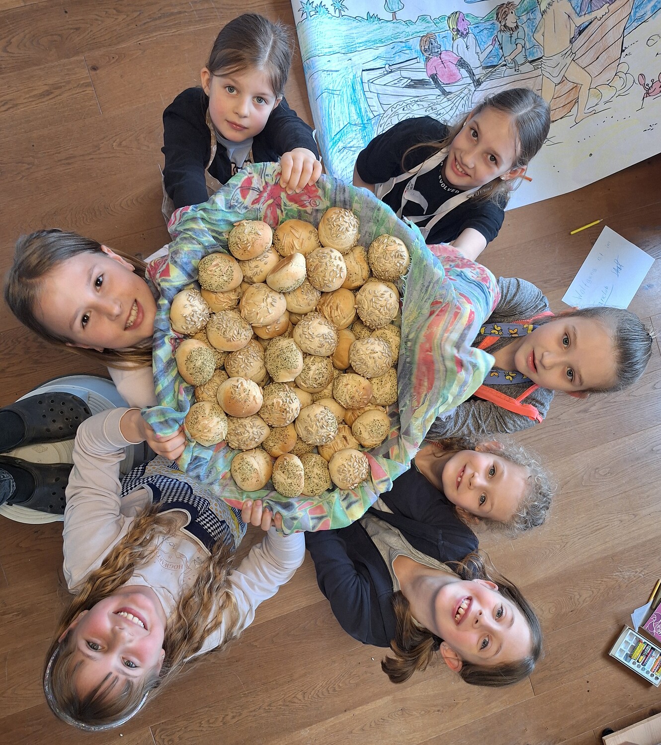 Wie in den vergangenen Jahren fand am Wochenende des 5. Fastensonntags das Backen der Minibrote bei uns am Waldsee statt. Sieben Kinder im Alter von 6 bis 11 Jahren buken gemeinsam mit Gertrude Gotschacher sowie Wolfgang und Caroline Stach 140 Minibrote. Es wurde geformt, gebacken, gesungen, getanzt, gemalt und viel gelacht.