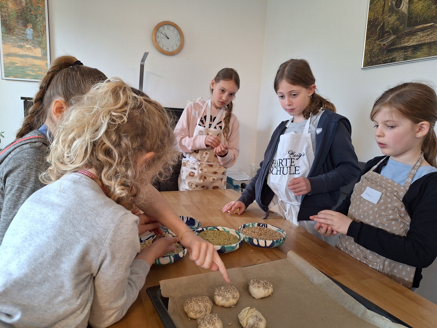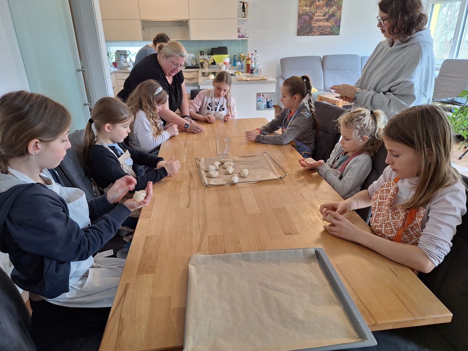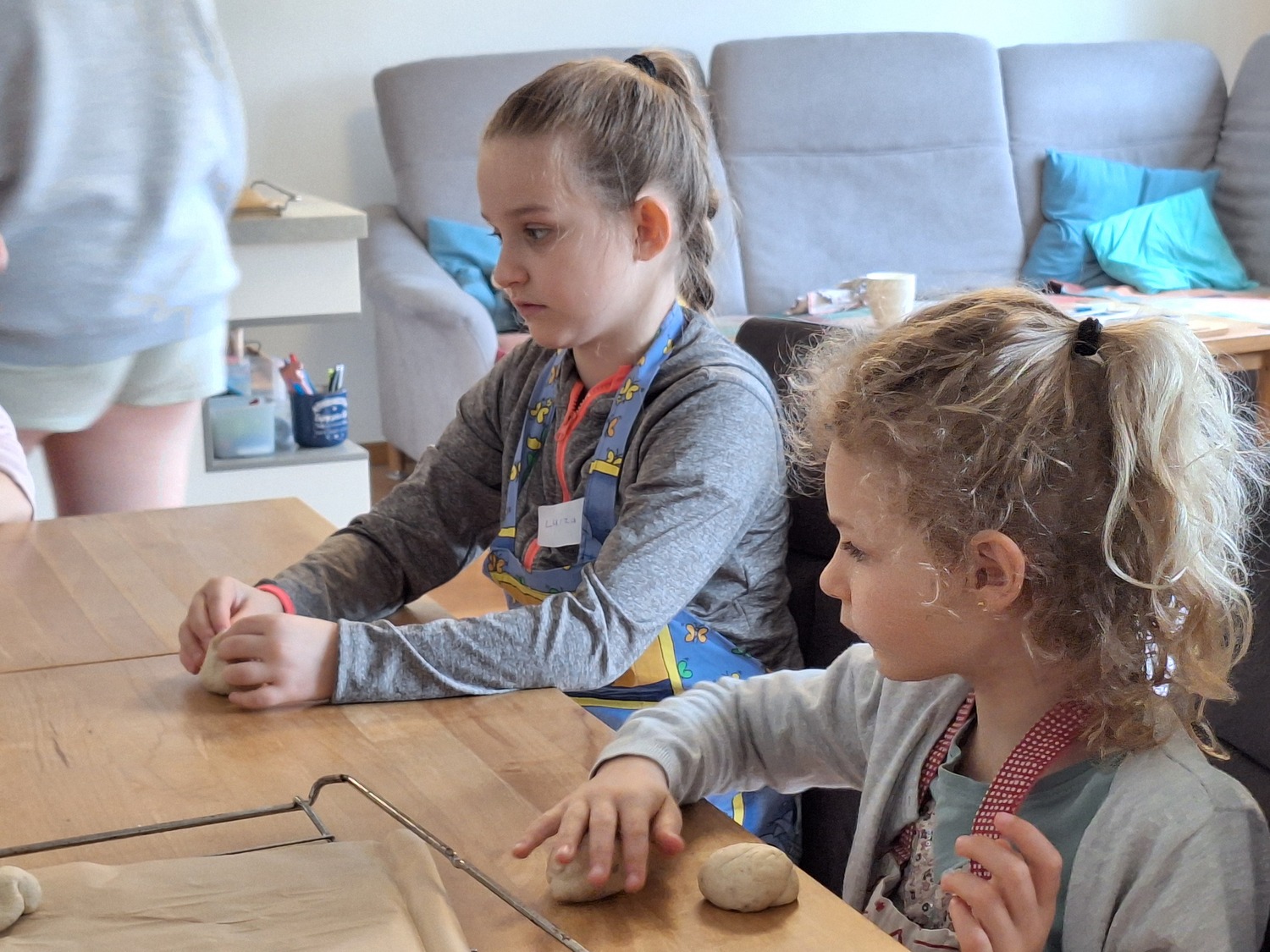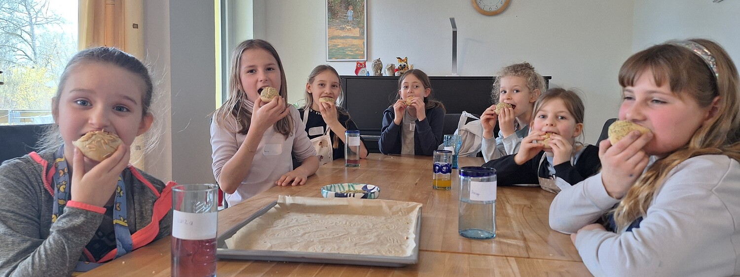 Wie in den vergangenen Jahren fand am Wochenende des 5. Fastensonntags das Backen der Minibrote bei uns am Waldsee statt. Sieben Kinder im Alter von 6 bis 11 Jahren buken gemeinsam mit Gertrude Gotschacher sowie Wolfgang und Caroline Stach 140 Minibrote. Es wurde geformt, gebacken, gesungen, getanzt, gemalt und viel gelacht.