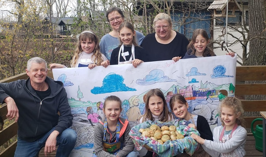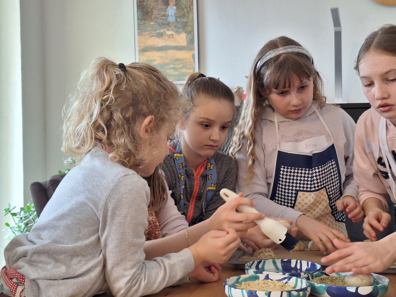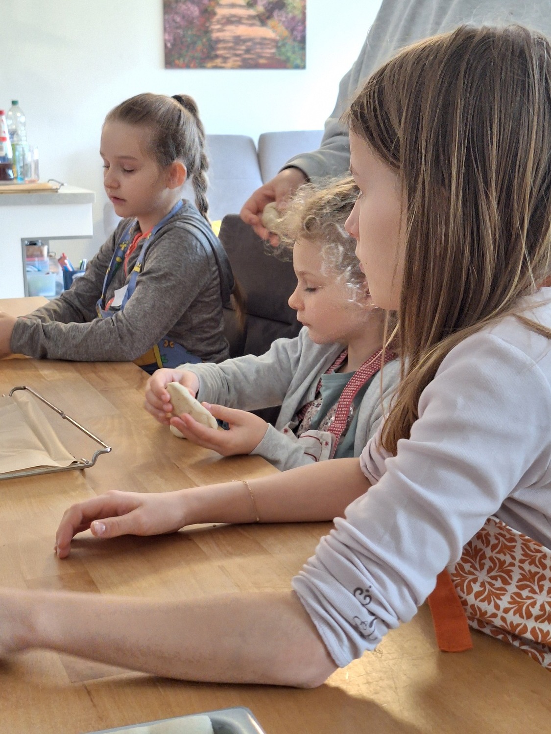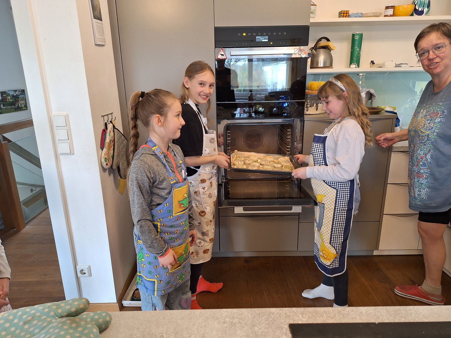 Wie in den vergangenen Jahren fand am Wochenende des 5. Fastensonntags das Backen der Minibrote bei uns am Waldsee statt. Sieben Kinder im Alter von 6 bis 11 Jahren buken gemeinsam mit Gertrude Gotschacher sowie Wolfgang und Caroline Stach 140 Minibrote. Es wurde geformt, gebacken, gesungen, getanzt, gemalt und viel gelacht.