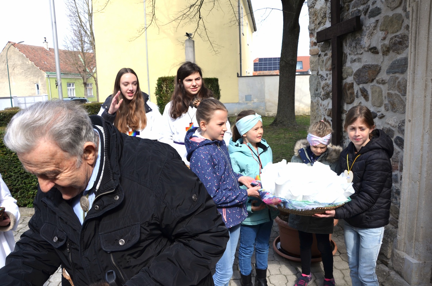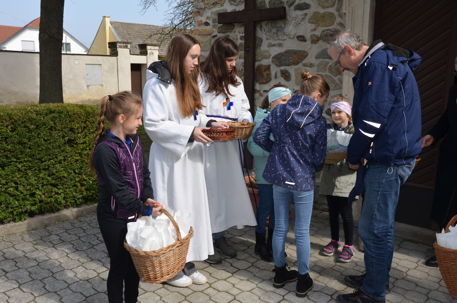 Im Anschluss an die Heilige Messe verteilten die Kinder die Brote gegen eine freie Spende.