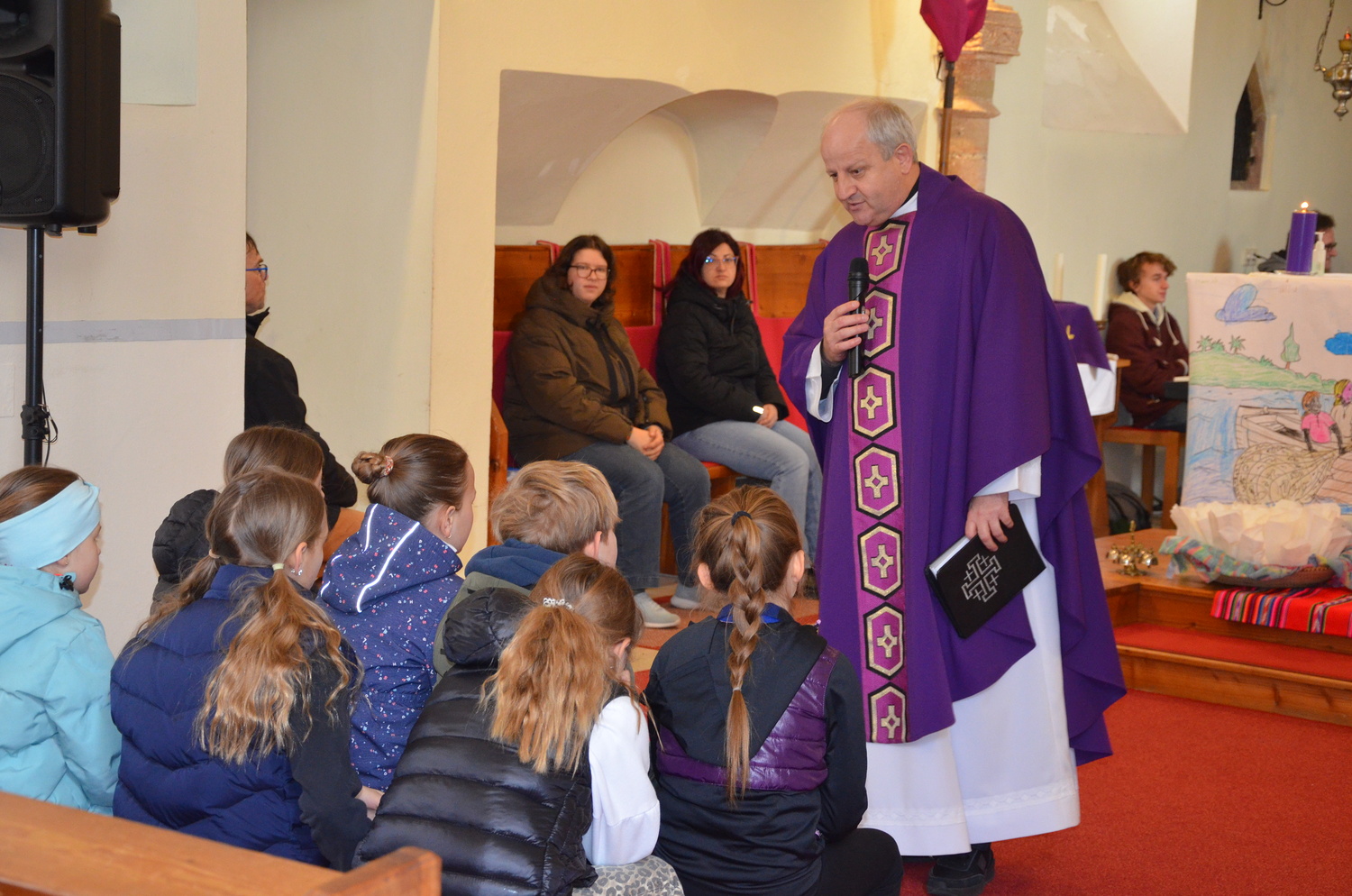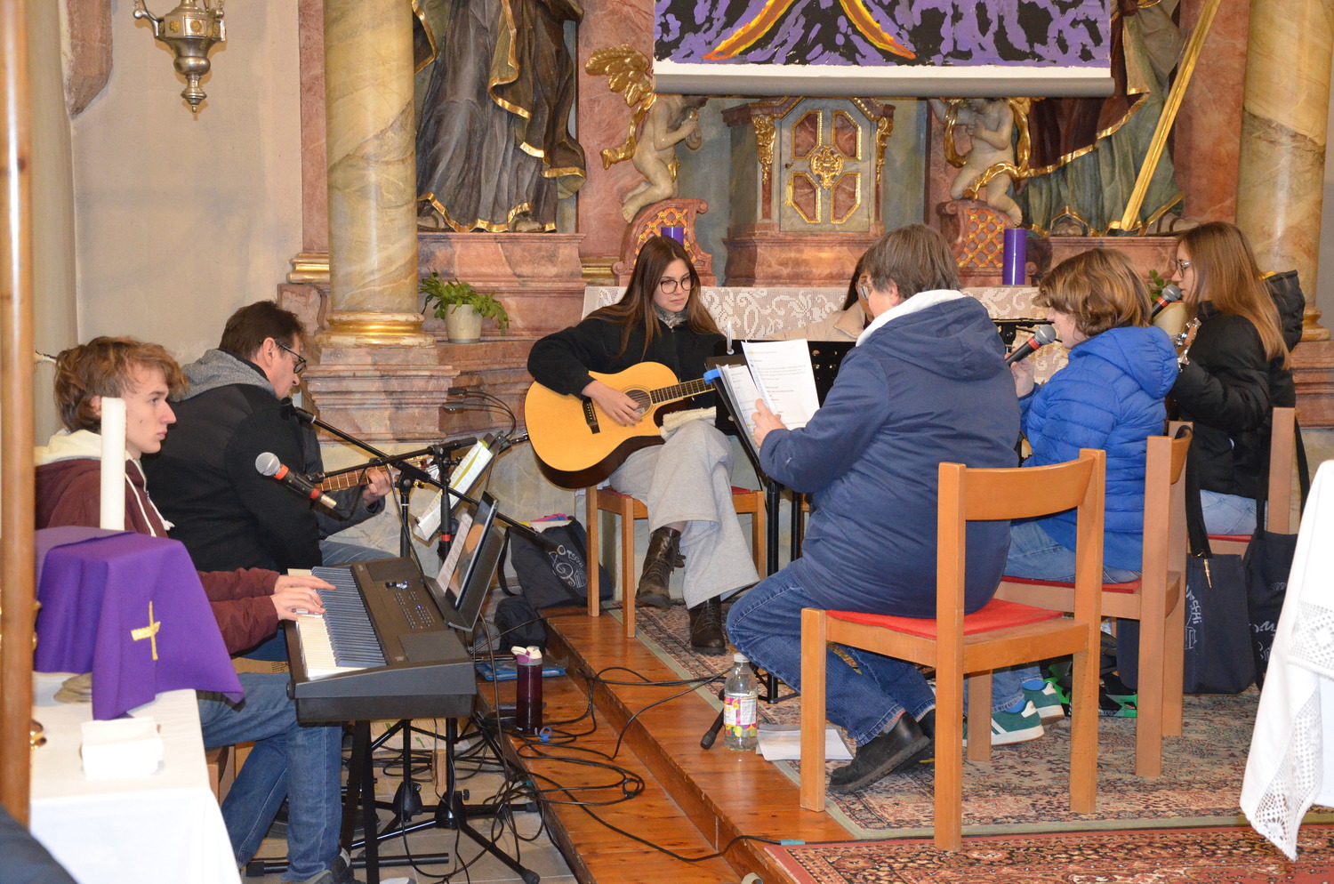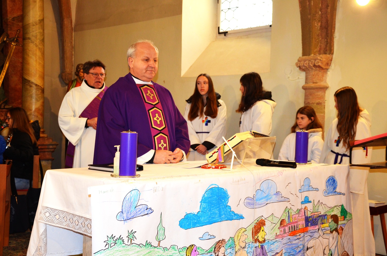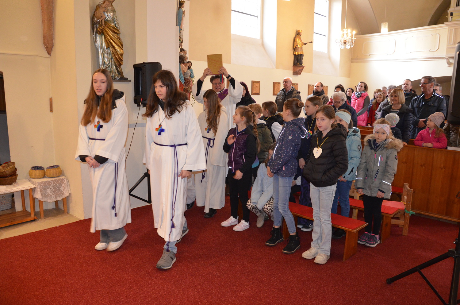 Am Sonntag zelebrierten Pfarrer Liviu Balascuti und Diakon Hans Wachter den „Minibrot“-Gottesdienst. Die jungen Brotbäckerinnen und Caroline Stach lasen Texte und Fürbitten und tanzten im musikalisch von O_M_TSCHI gestalteten Gottesdienst.