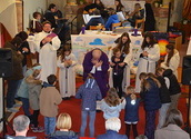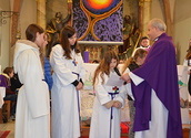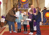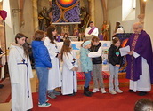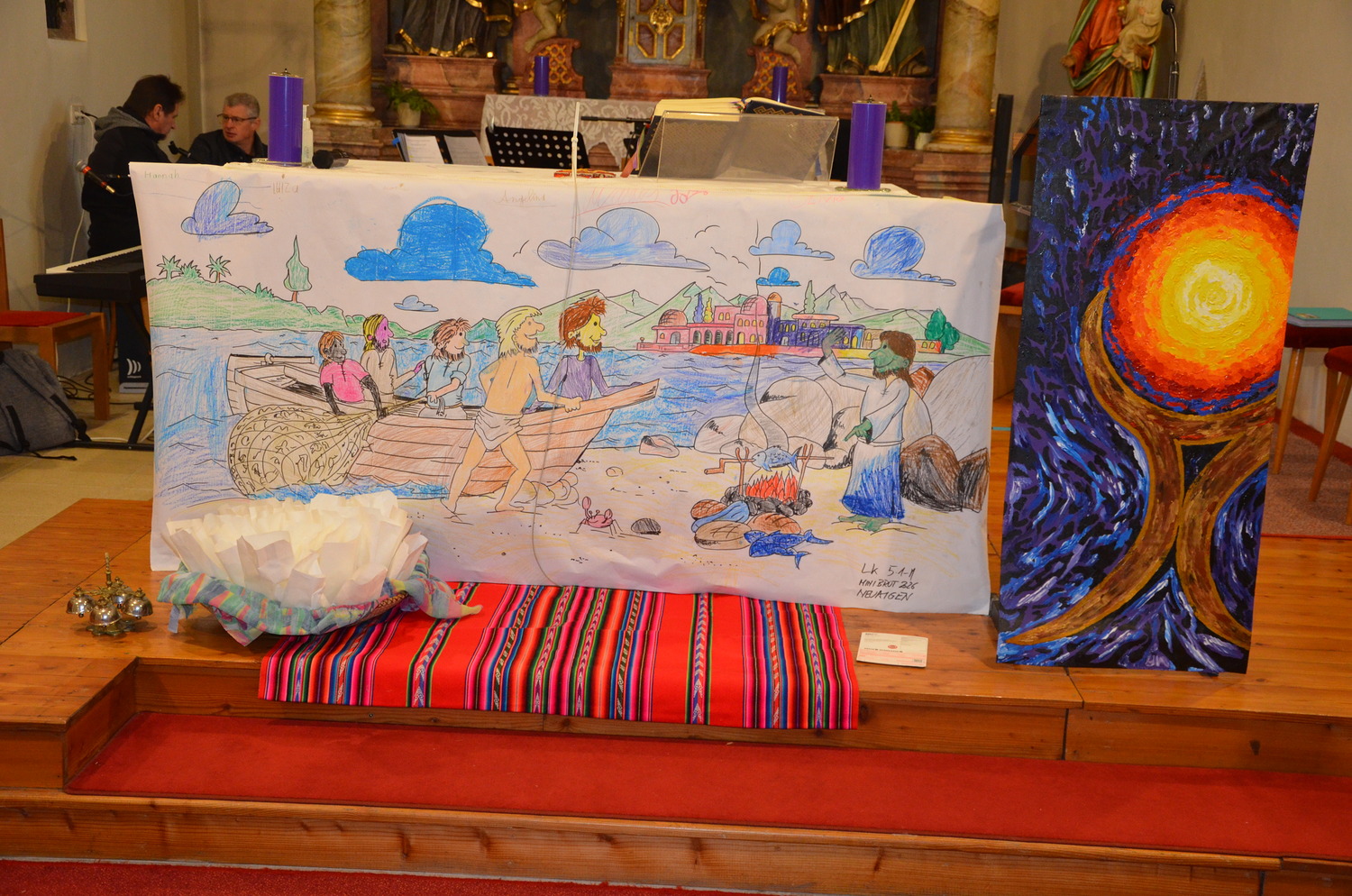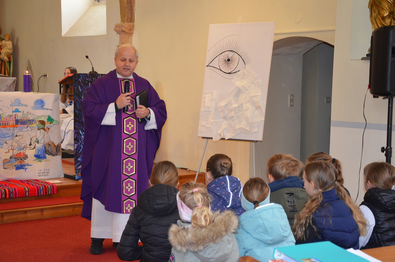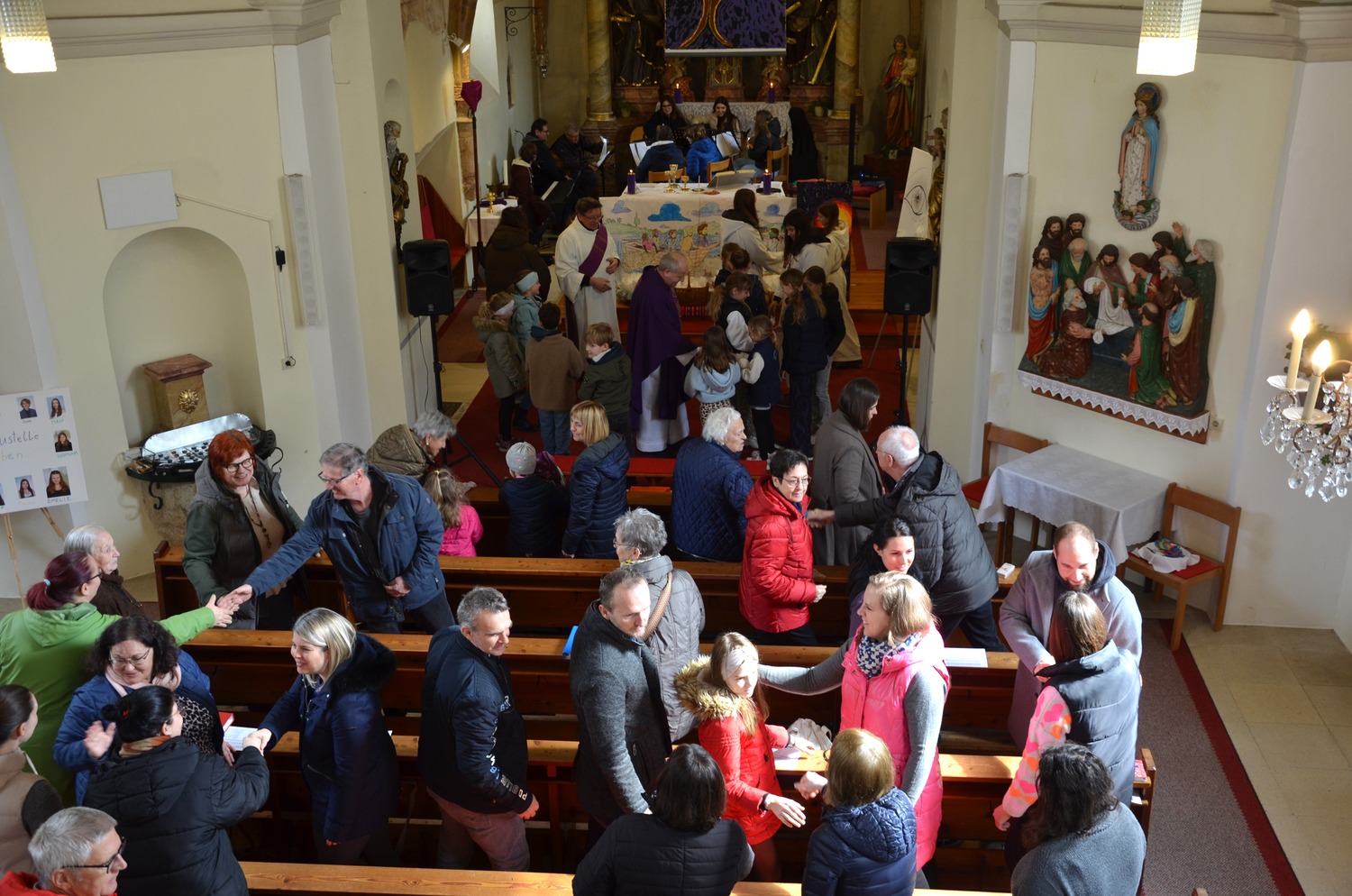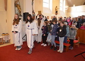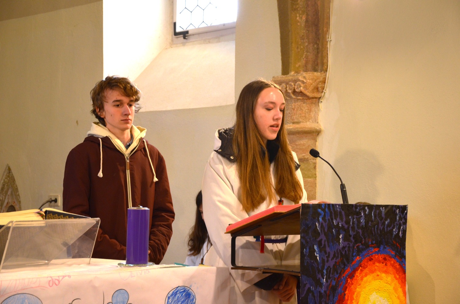 Am Sonntag zelebrierten Pfarrer Liviu Balascuti und Diakon Hans Wachter den „Minibrot“-Gottesdienst. Die jungen Brotbäckerinnen und Caroline Stach lasen Texte und Fürbitten und tanzten im musikalisch von O_M_TSCHI gestalteten Gottesdienst.
