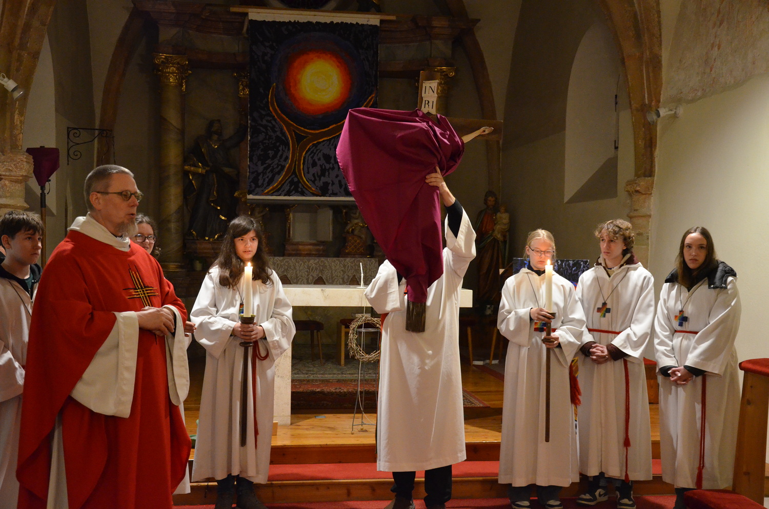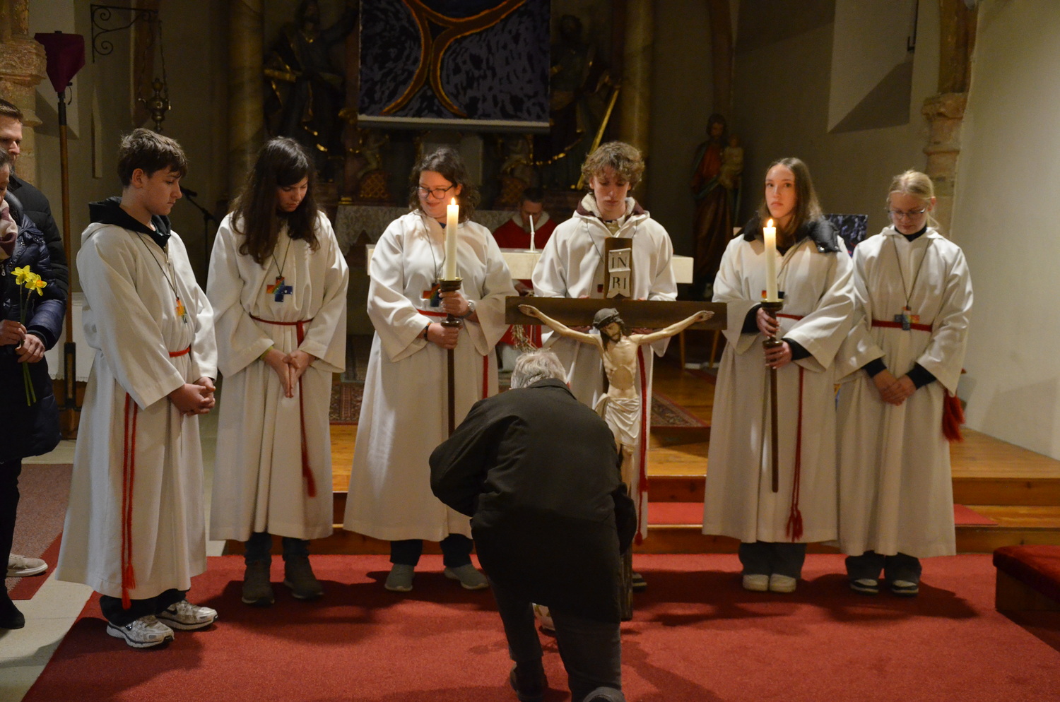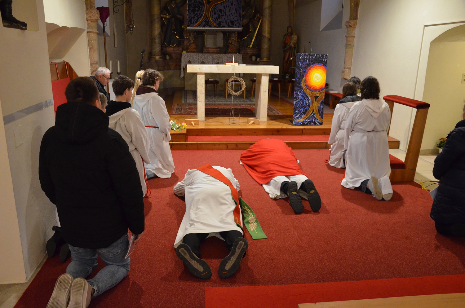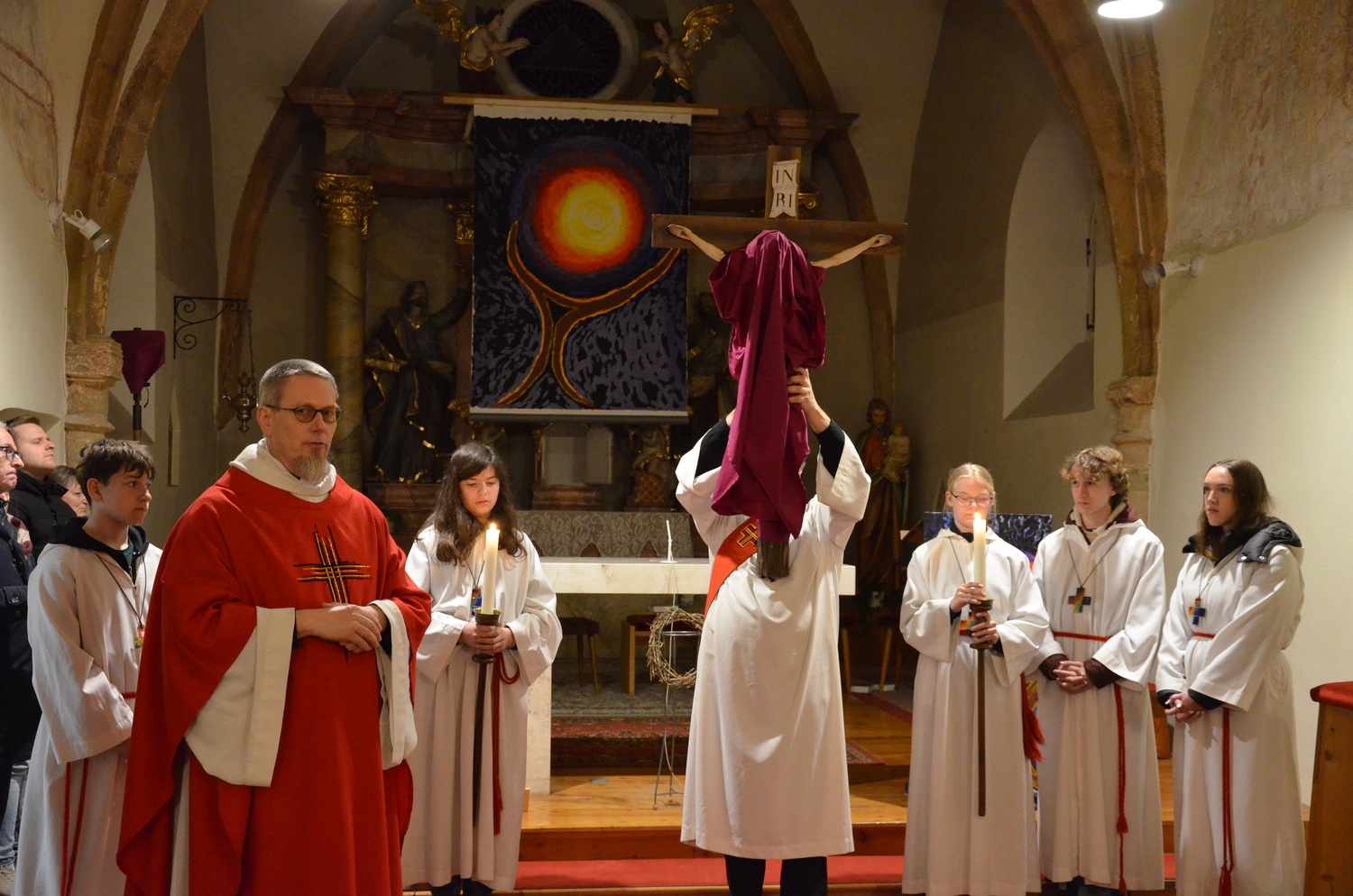 Die Karfreitagsliturgie, zelebriert von Subregens Markus Muth und Diakon Hans Wachter beinhalteten traditionell den Wortgottesdienst, Passionsgeschichte, Großen Fürbitten, Kreuzverehrung und Kommunionfeier.