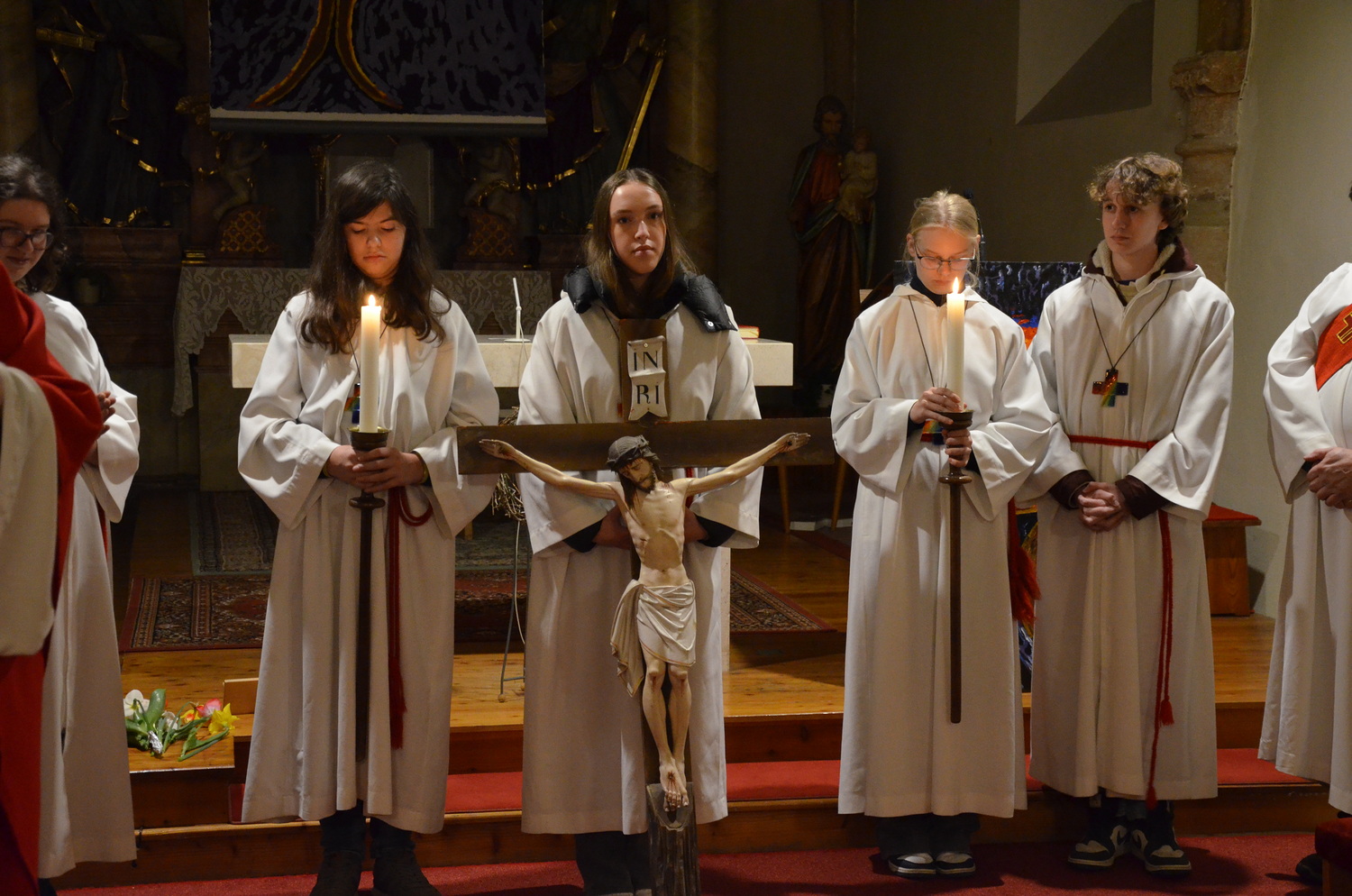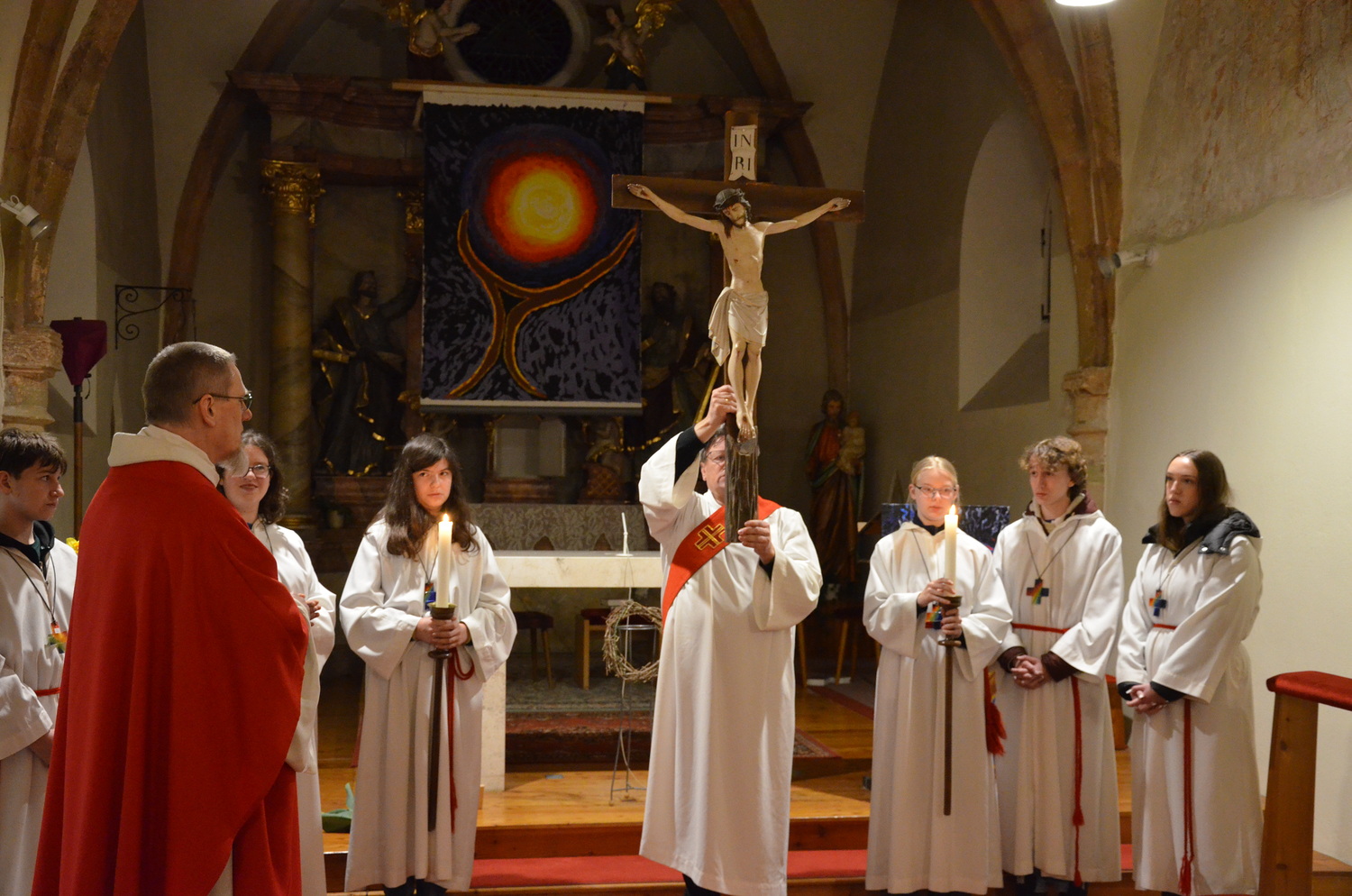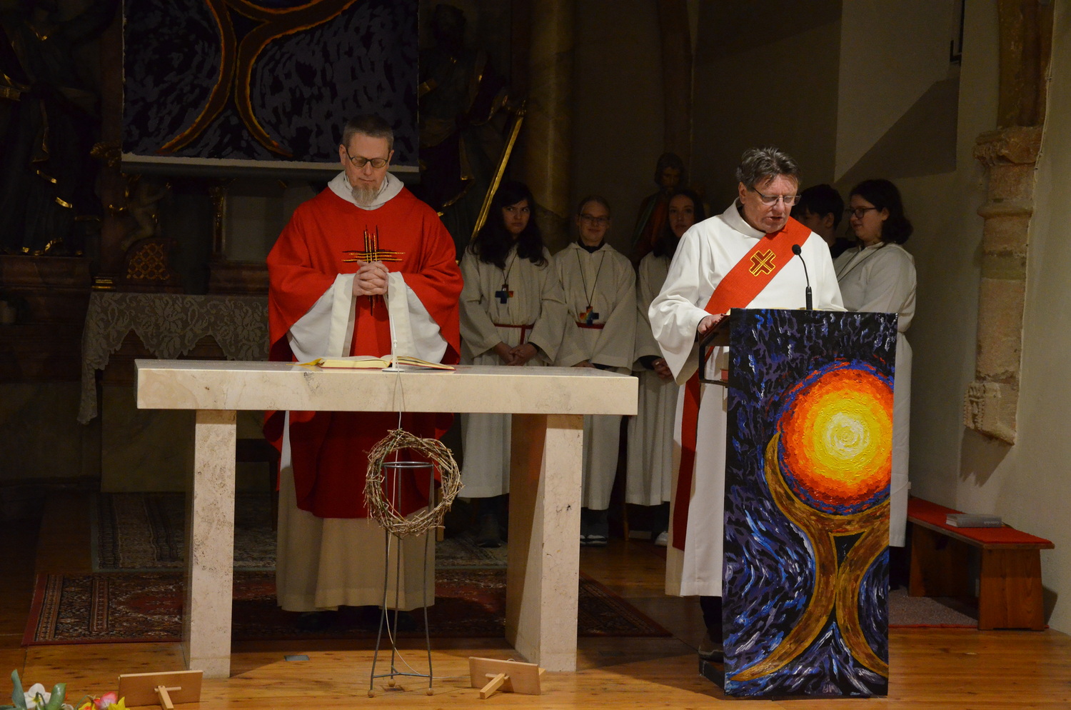 Die Karfreitagsliturgie, zelebriert von Subregens Markus Muth und Diakon Hans Wachter beinhalteten traditionell den Wortgottesdienst, Passionsgeschichte, Großen Fürbitten, Kreuzverehrung und Kommunionfeier.