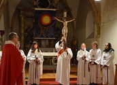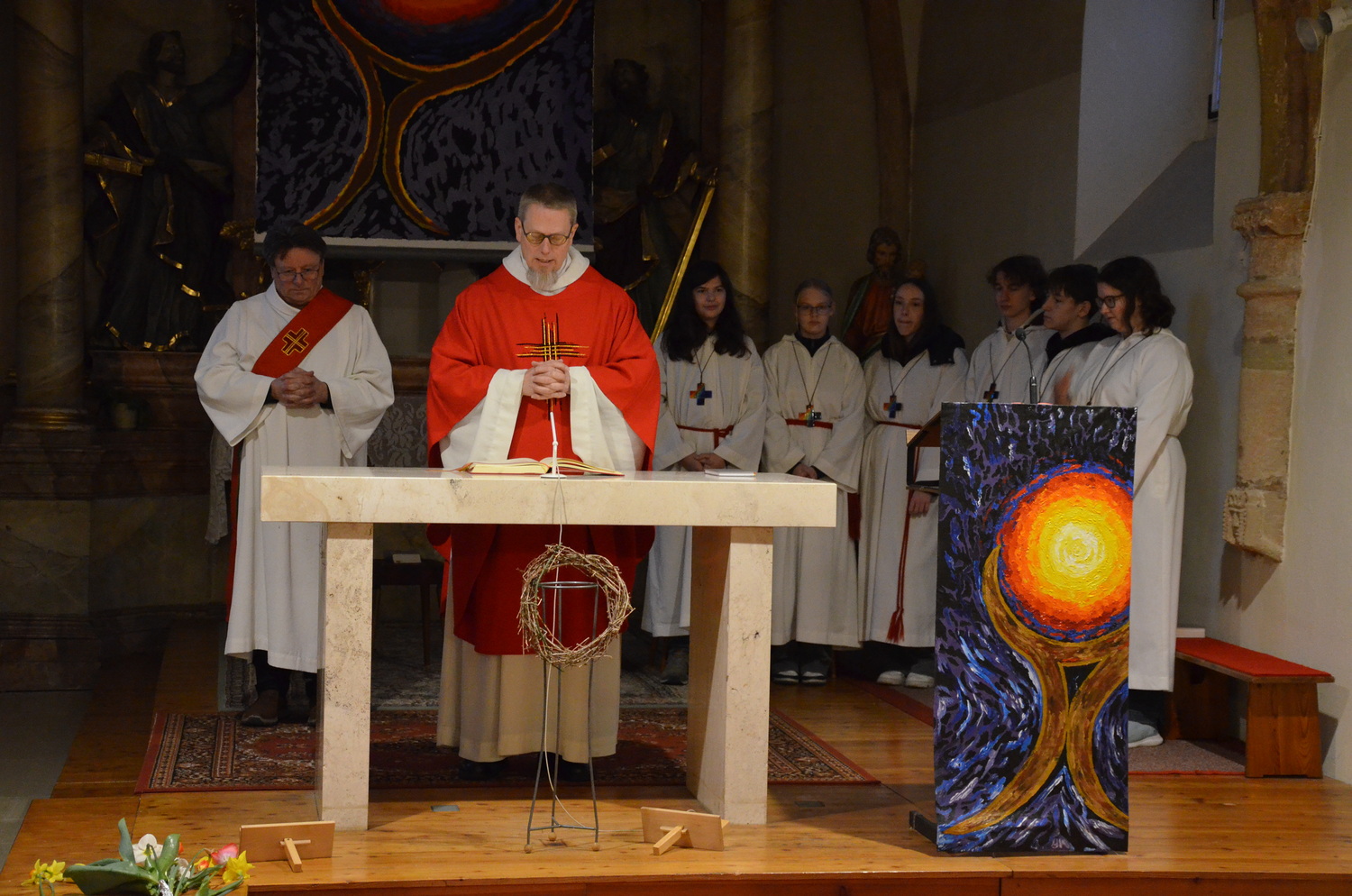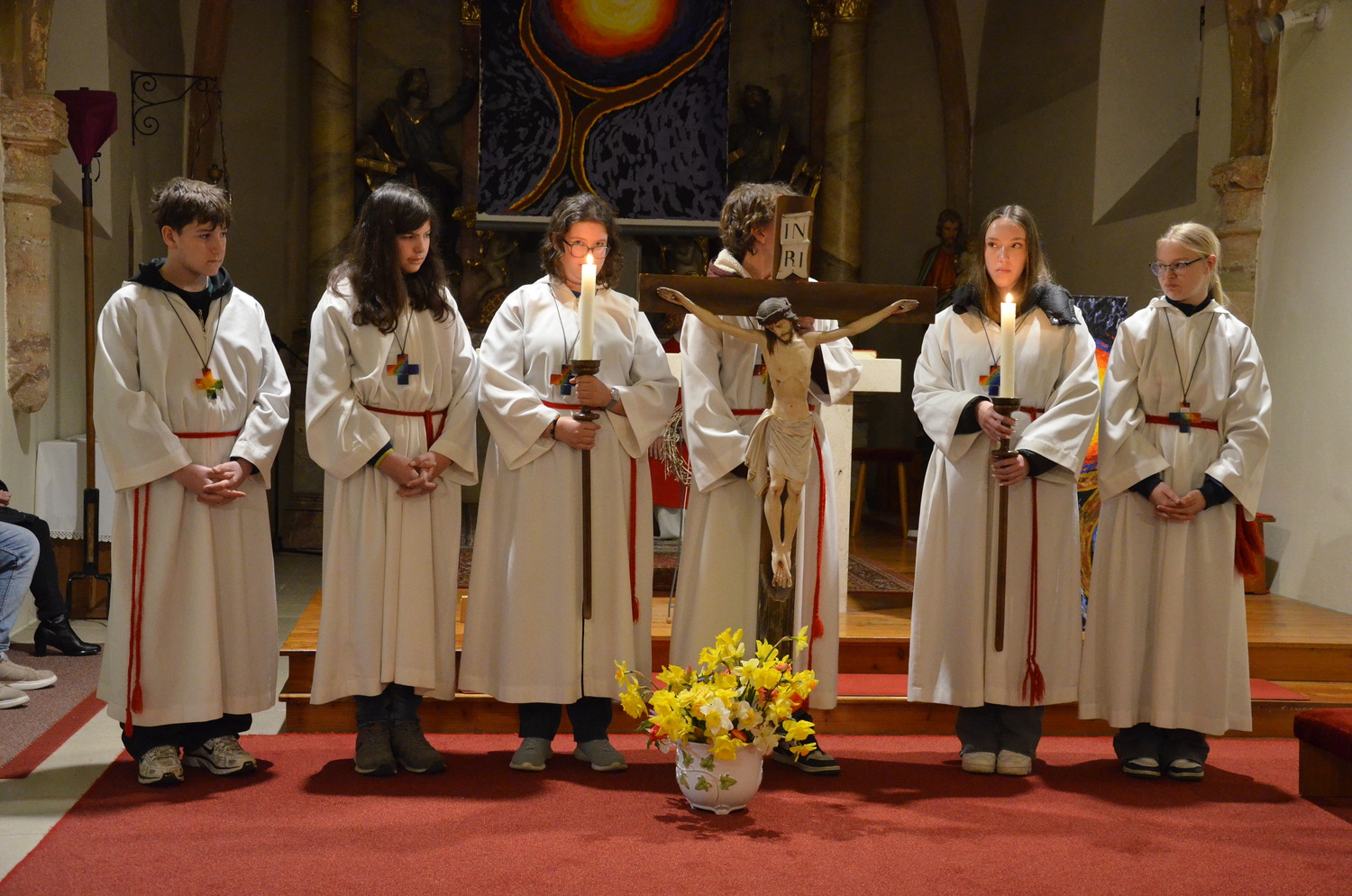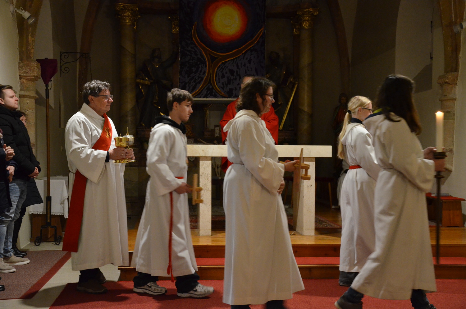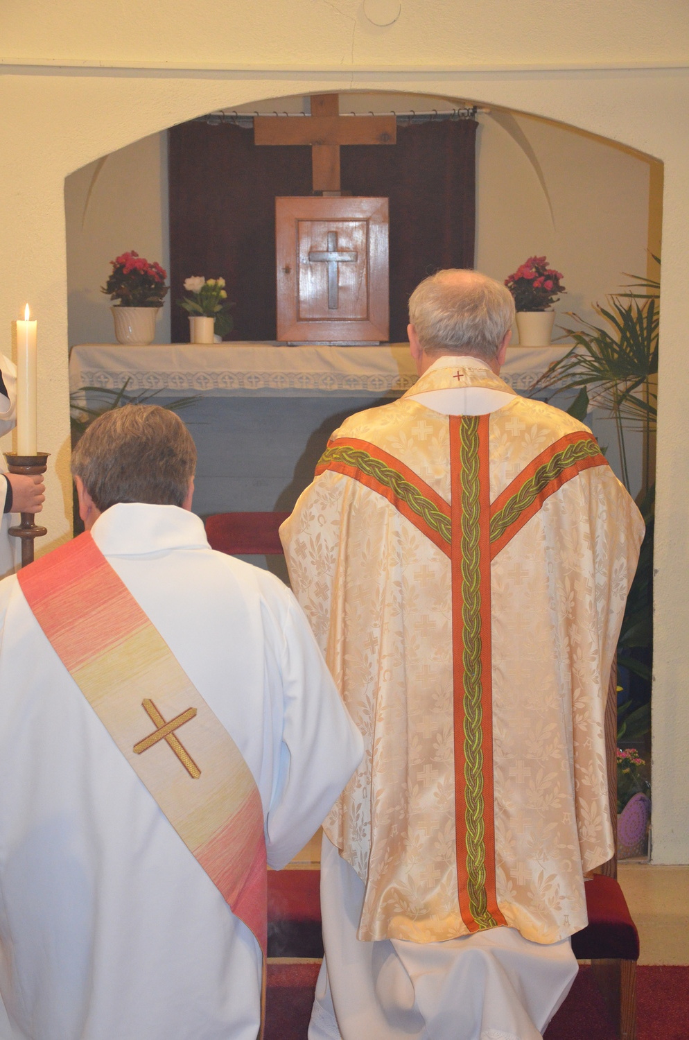 Die Karfreitagsliturgie, zelebriert von Subregens Markus Muth und Diakon Hans Wachter beinhalteten traditionell den Wortgottesdienst, Passionsgeschichte, Großen Fürbitten, Kreuzverehrung und Kommunionfeier.