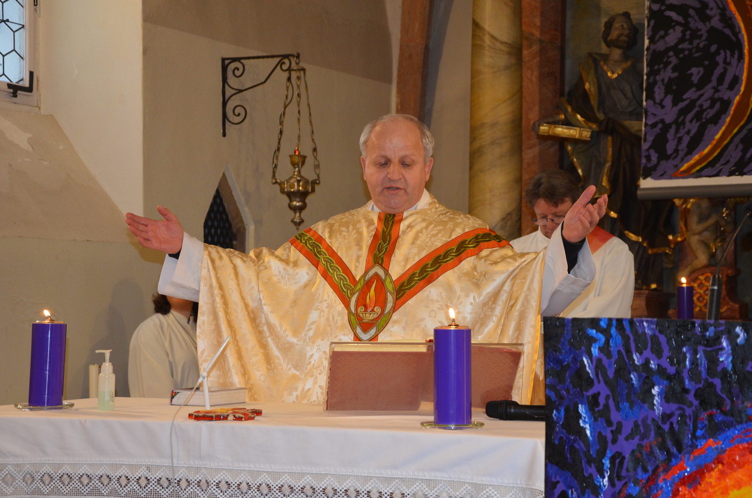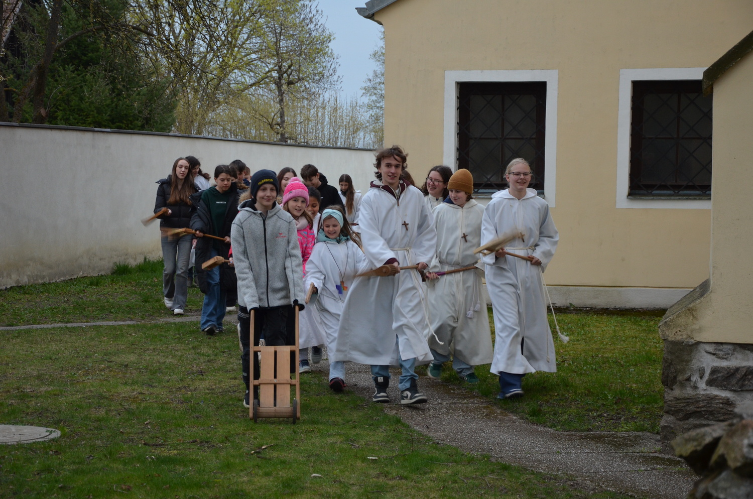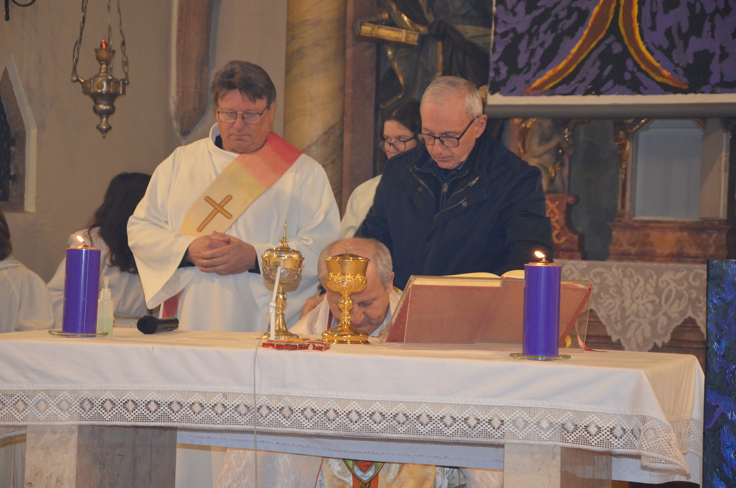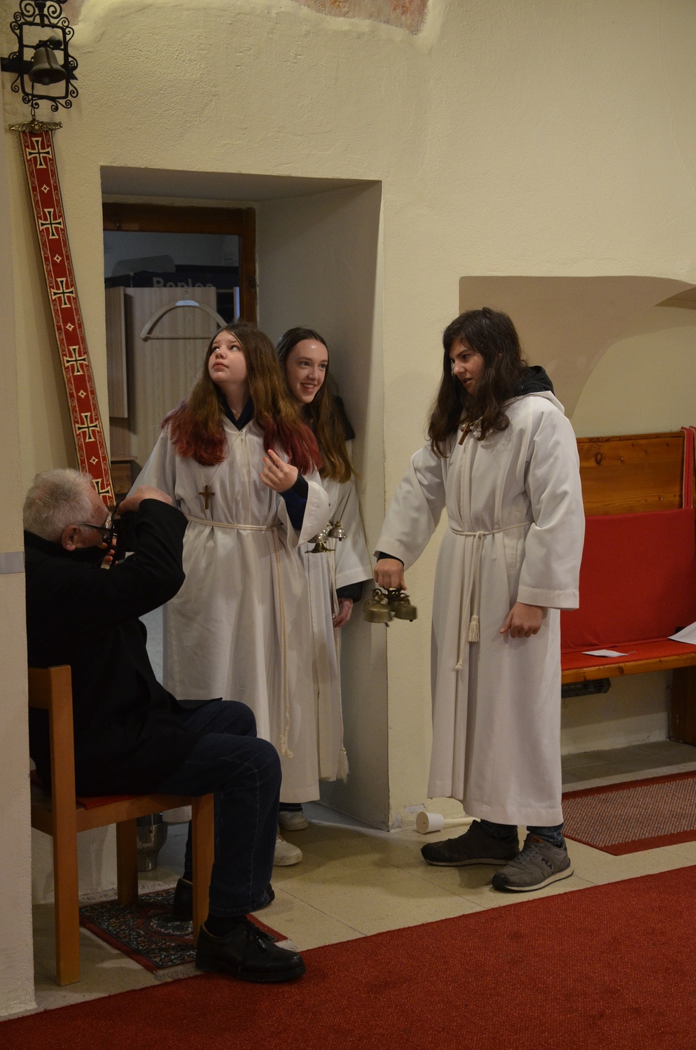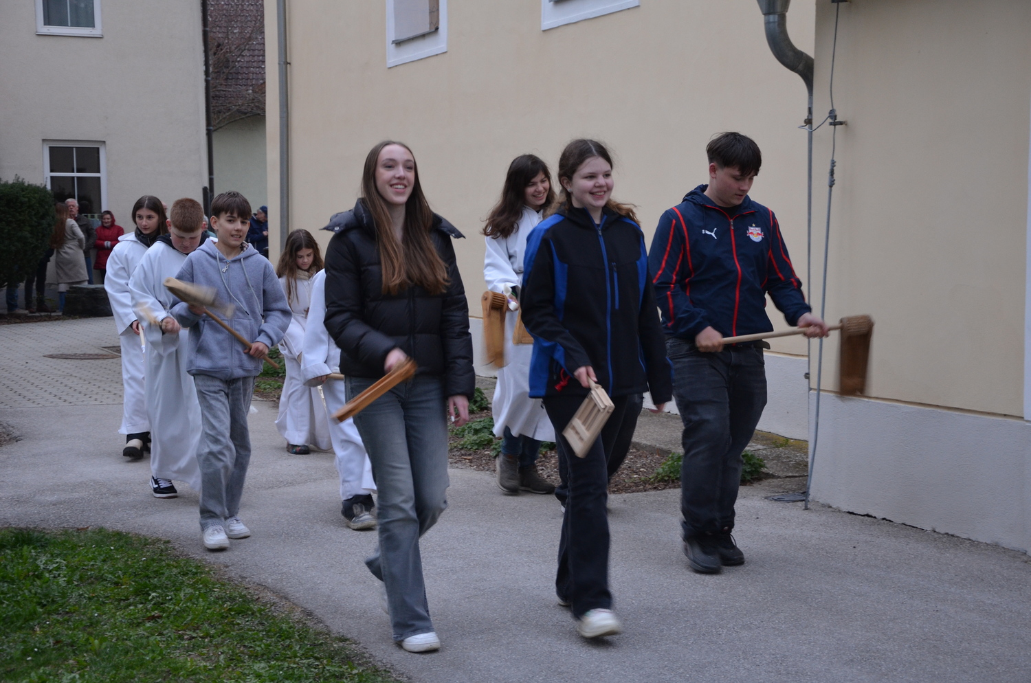 Den Gründonnerstaggottesdienst – die Feier des letzten Abendmahls Jesu mit seinen Jüngern - zelebrierte Pfarrer Liviu Balascuti mit Diakon Hans Wachter. Die Glocken und die Orgel verstummten nach dem Goria und die Ratschen übernahmen die nächsten Tage die Arbeit der Klingeln und Glocken.