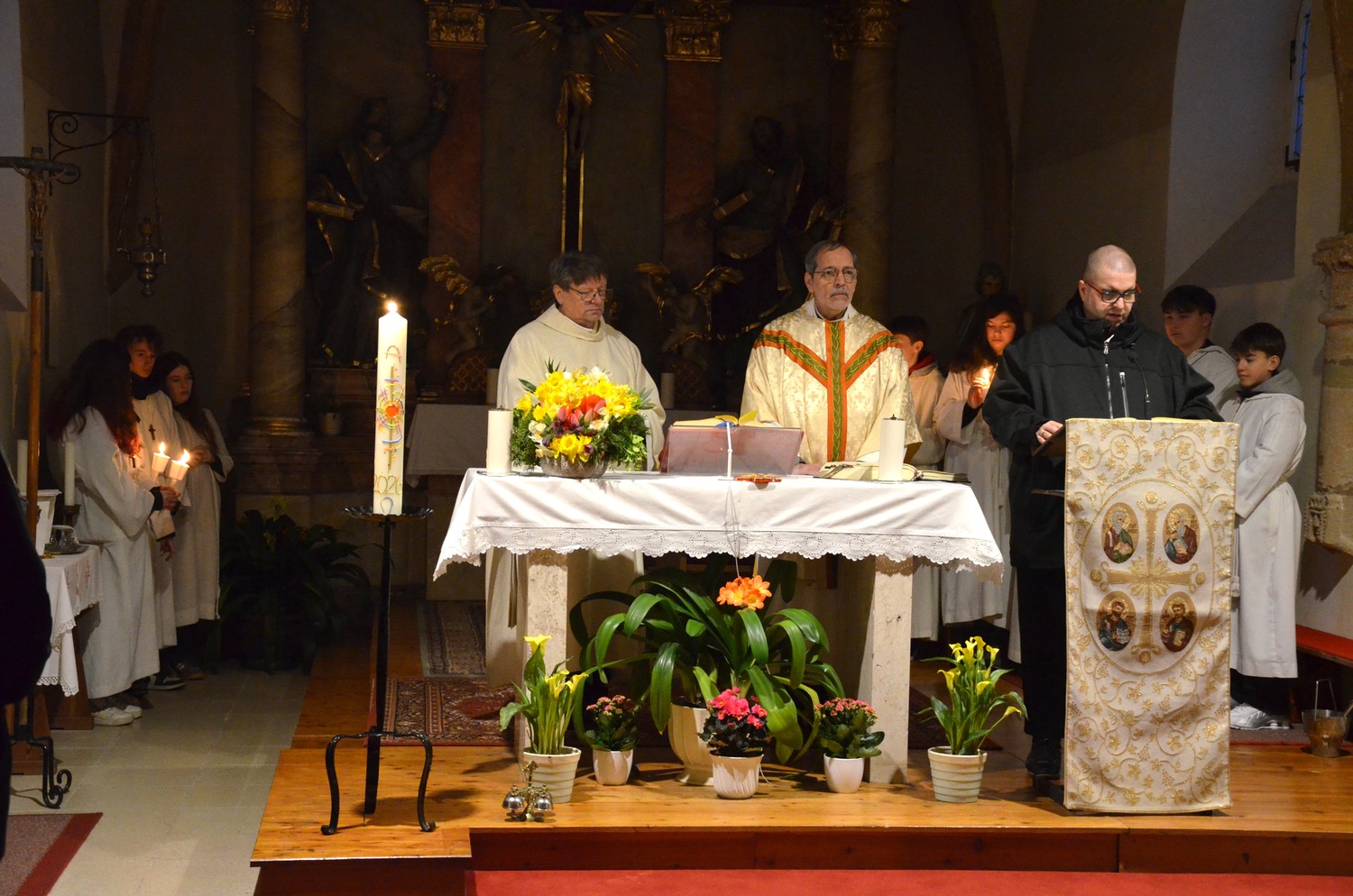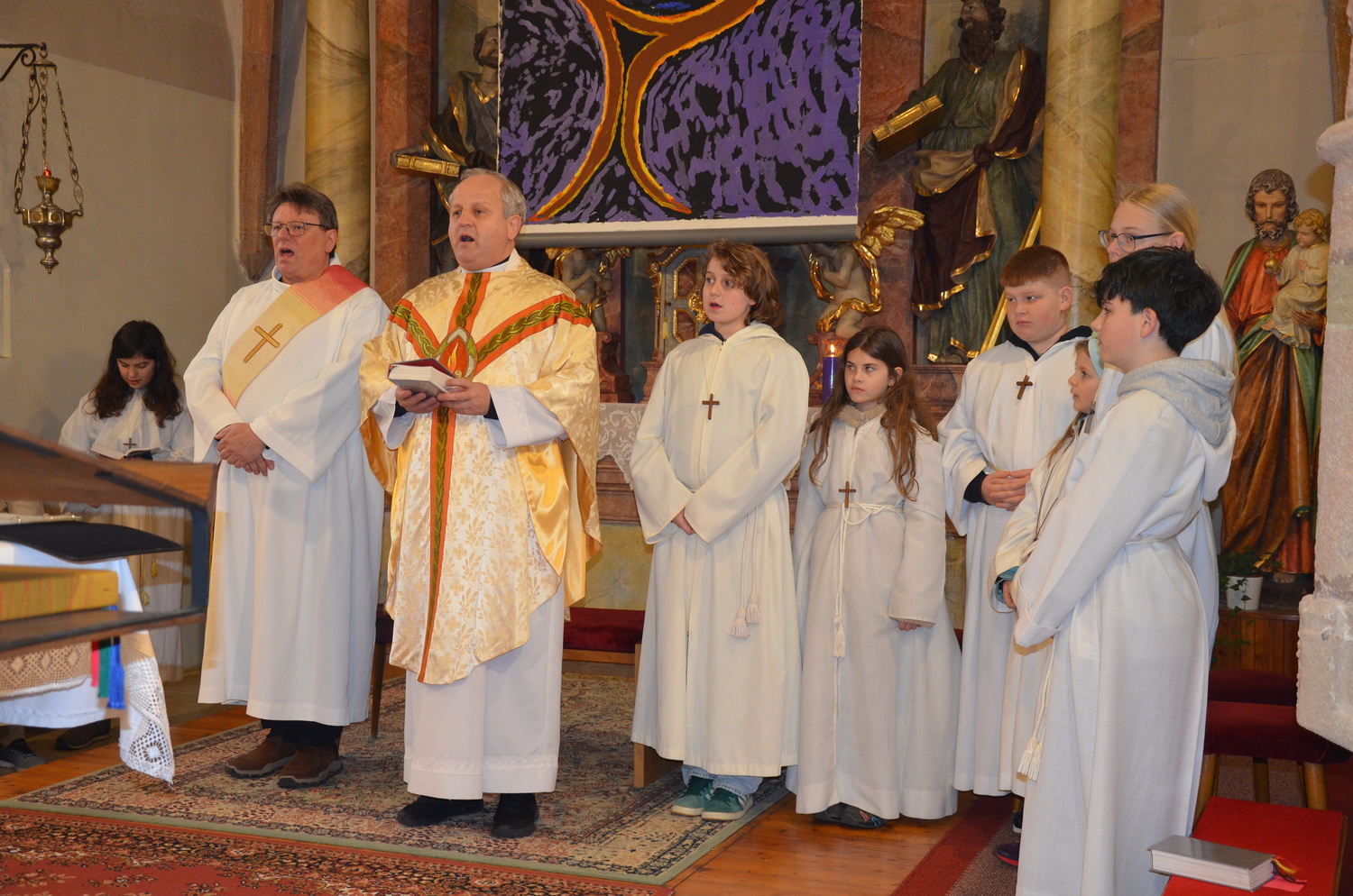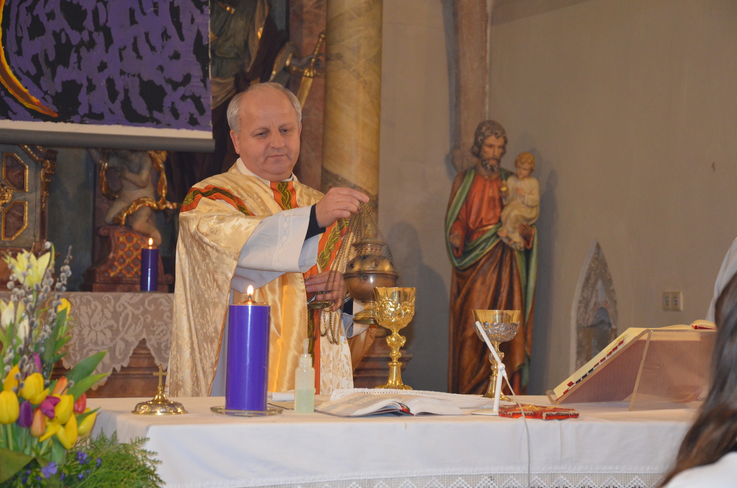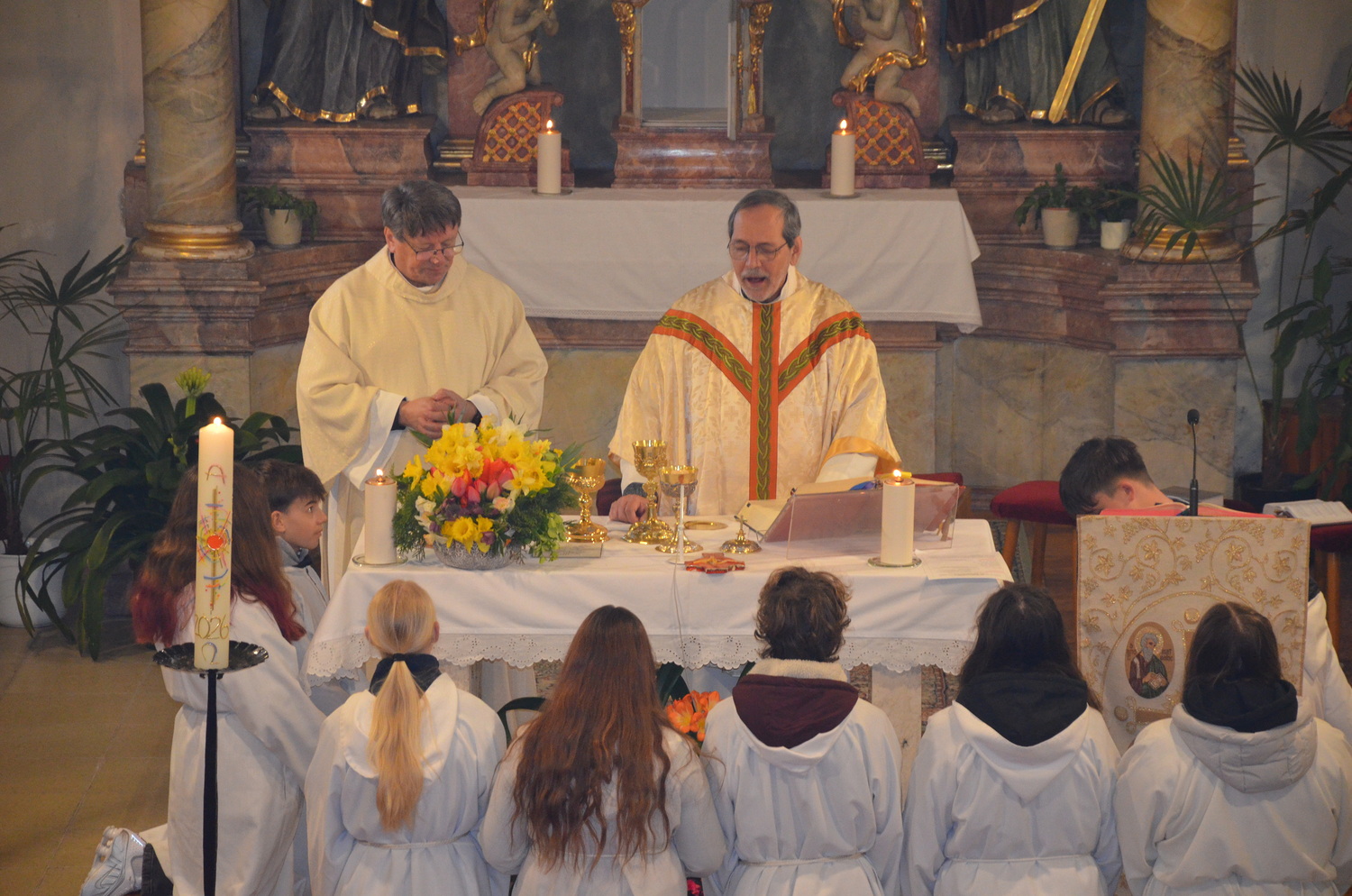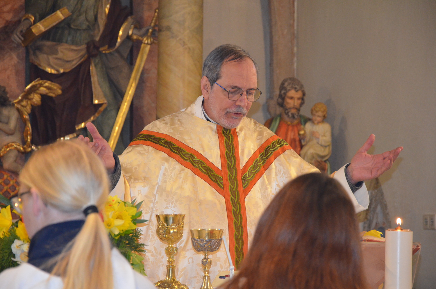 Den Gründonnerstaggottesdienst – die Feier des letzten Abendmahls Jesu mit seinen Jüngern - zelebrierte Pfarrer Liviu Balascuti mit Diakon Hans Wachter. Die Glocken und die Orgel verstummten nach dem Goria und die Ratschen übernahmen die nächsten Tage die Arbeit der Klingeln und Glocken.