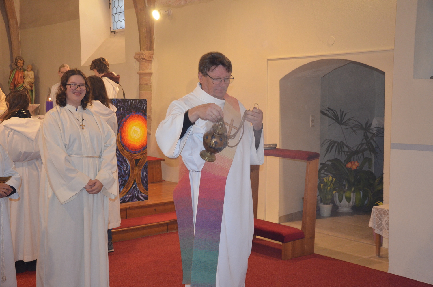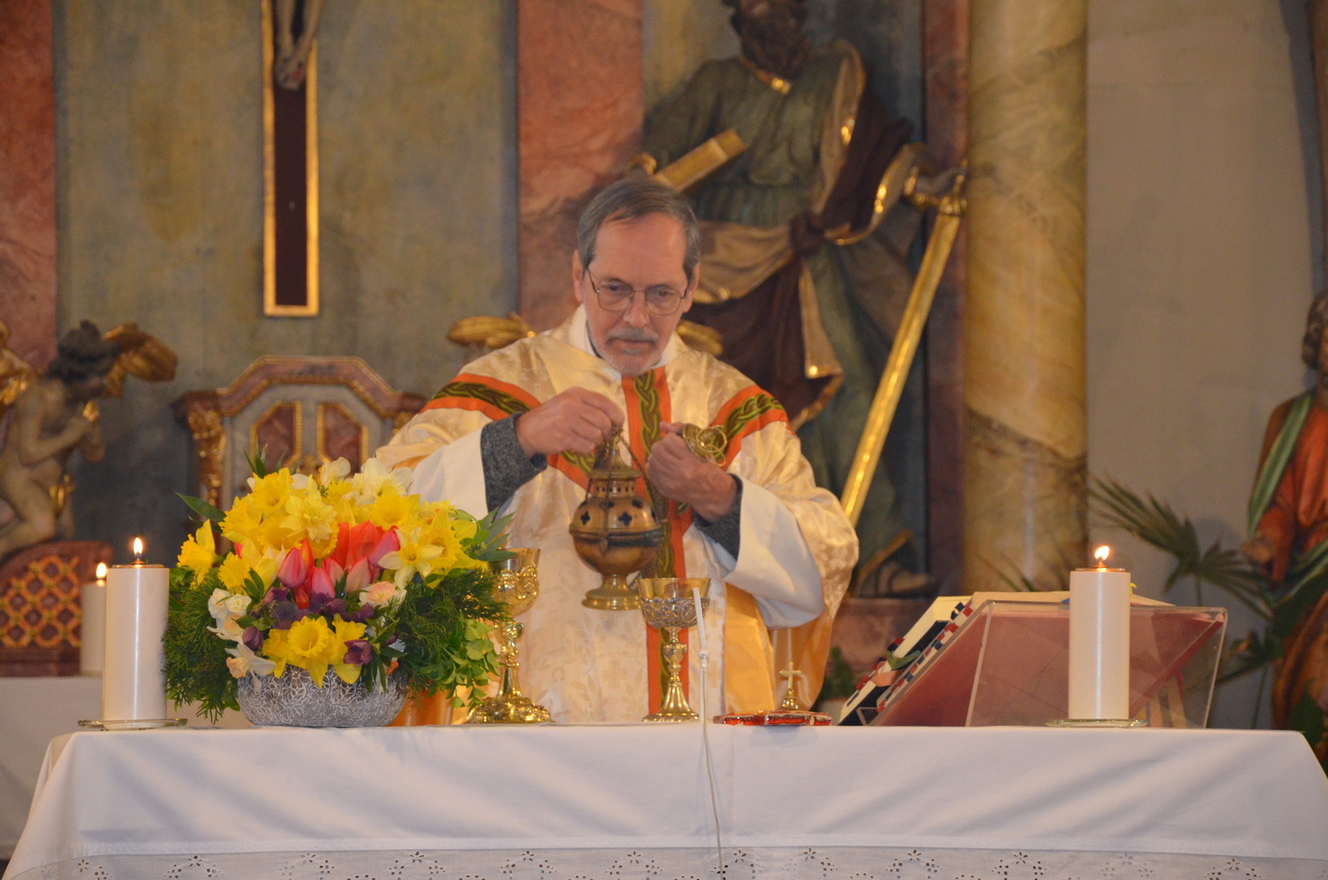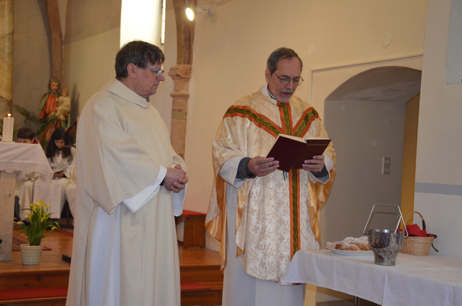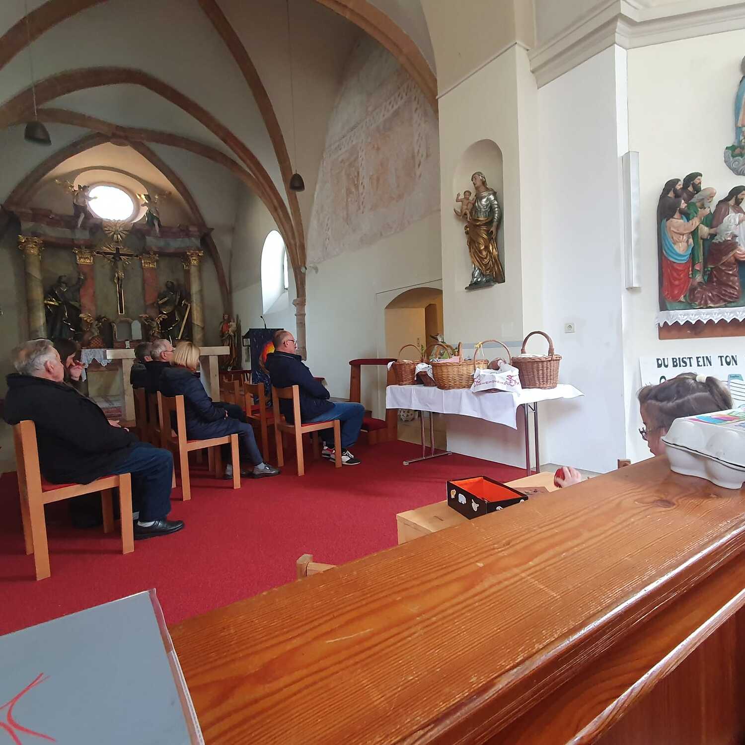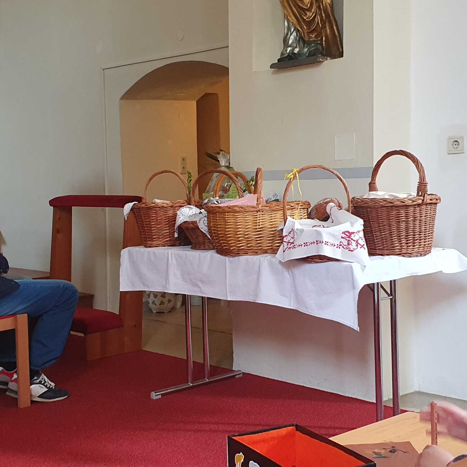 Am Samstag fand in der Kirche eine Anbetungsstunde mit geführter Mediation statt und unser Diakon segnete die mitgebrachten Speisen.