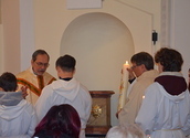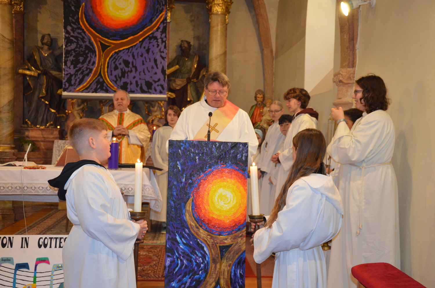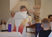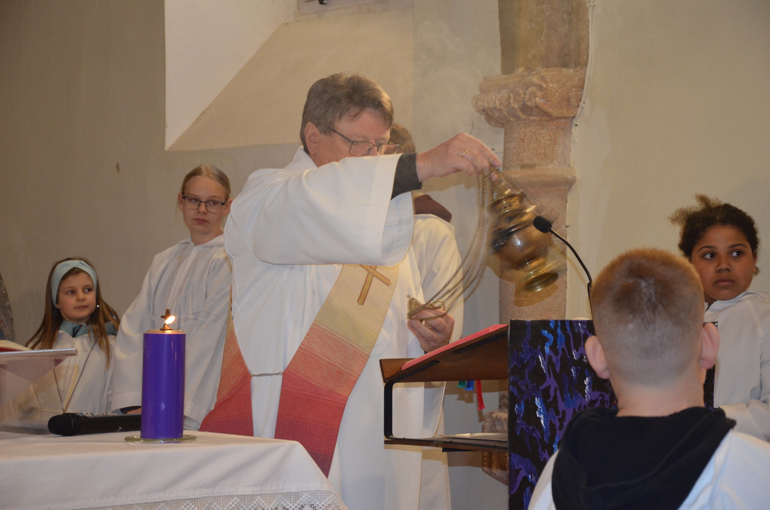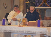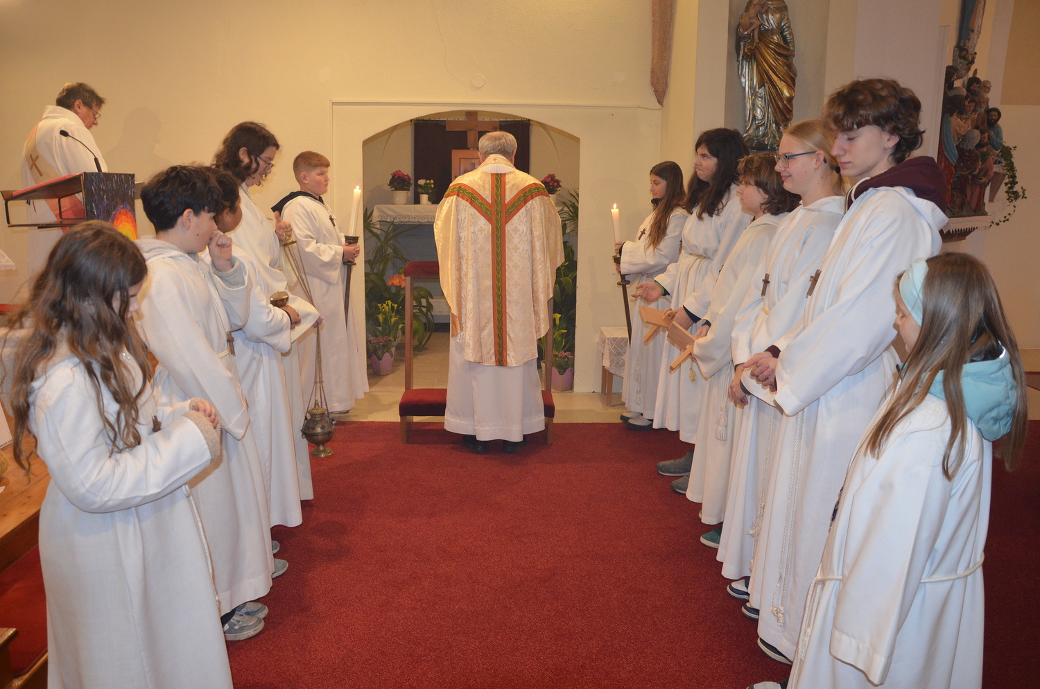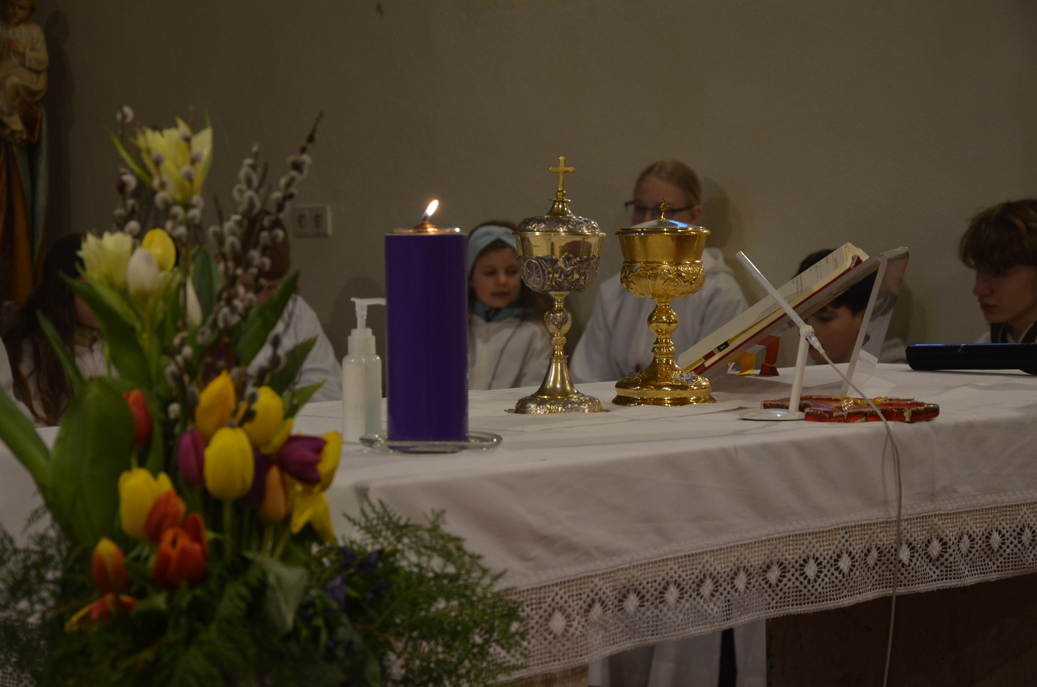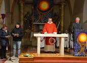 Am Samstag fand in der Kirche eine Anbetungsstunde mit geführter Mediation statt und unser Diakon segnete die mitgebrachten Speisen.