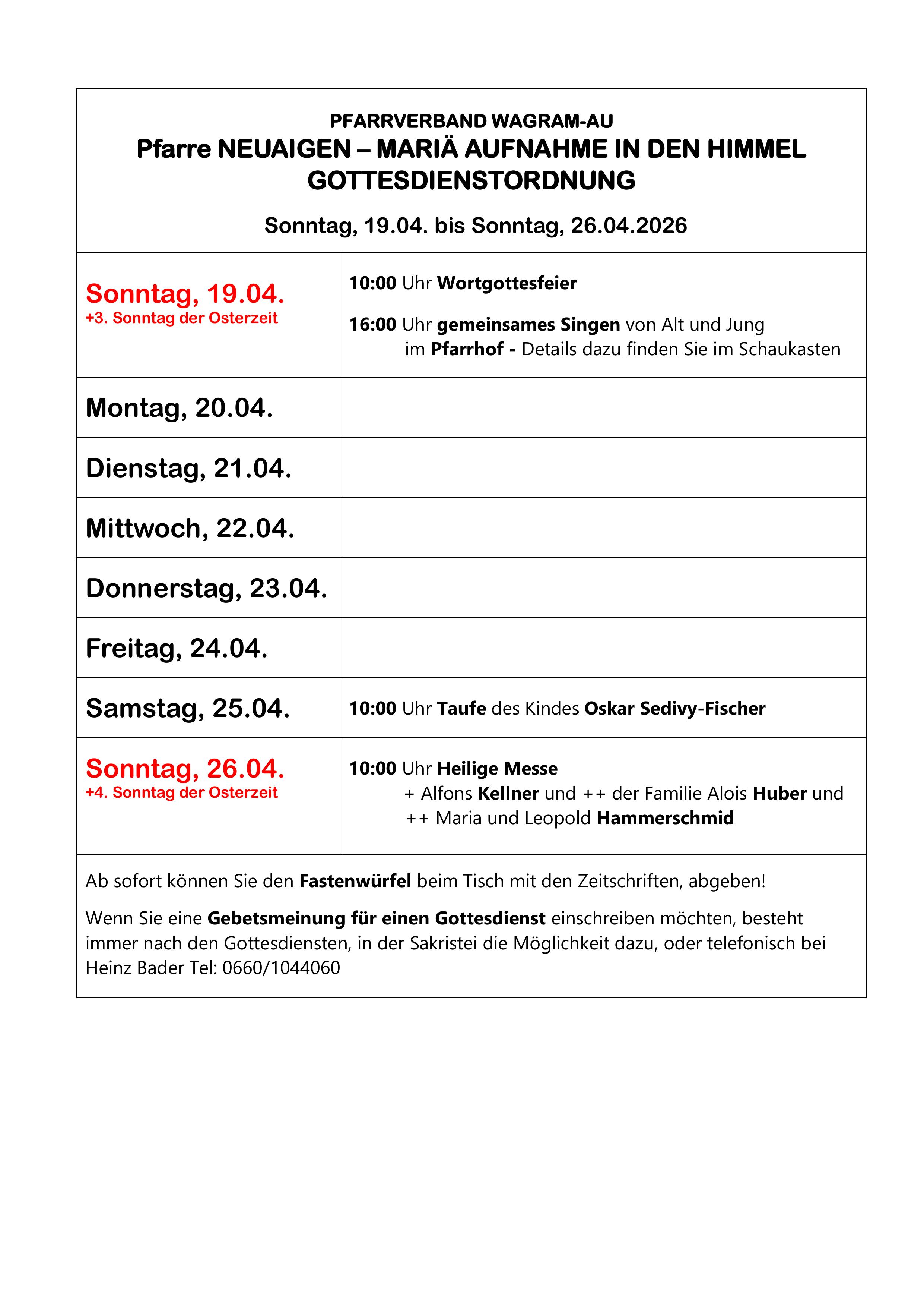 Pfarrtermine