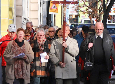 Der Stadtkreuzweg stand unter dem Motto „überkreuzt.‟ Vom Missionkreuz bei der Pfarrkirche führte der Weg zur Mariensäule, zum Pflegeheim, zum Weltladen und wieder zurück zur Pfarrkirche.