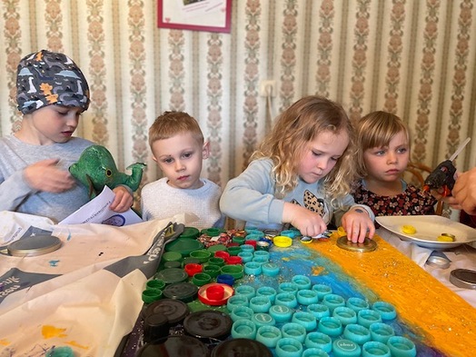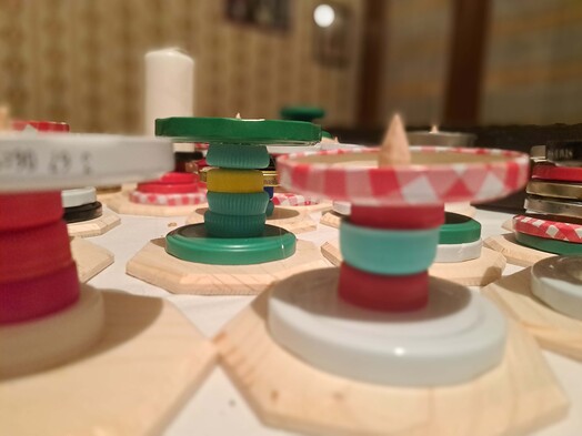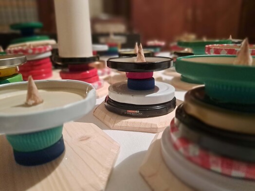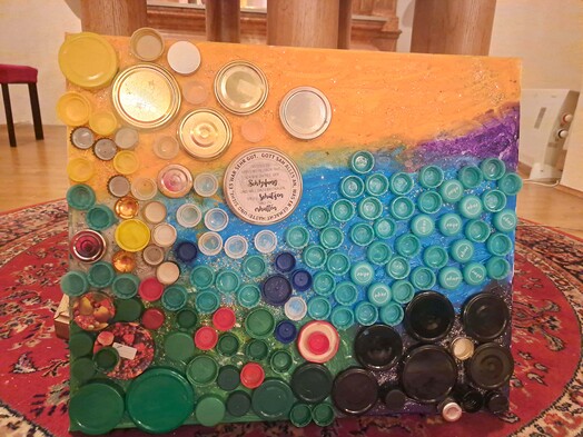 Aus den gesammelten Verschlüssen haben wir beim Kinderbasteln zum Palmsonntag mit den Kindern Kerzenständer gebaut, die am Palmsonntag mit den Osterkerzen verkauft wurden.