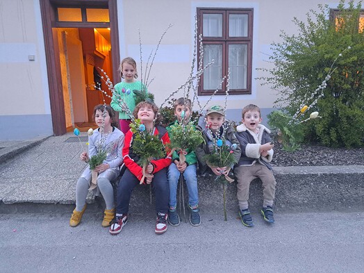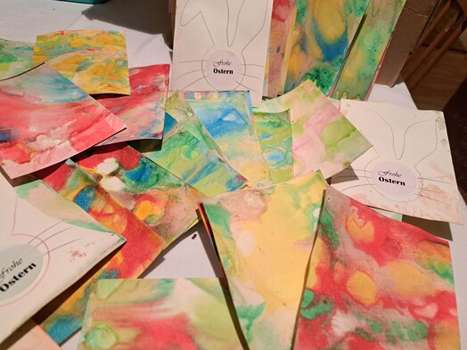 Es wurden Palmbuschen gebunden, Ostereier gestaltet und Papier für Osterkarten marmoriert.