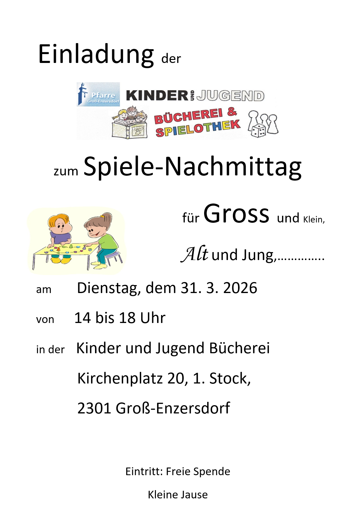 Herzliche Einladung zum Spielenachmittag der Kinderbücherei.