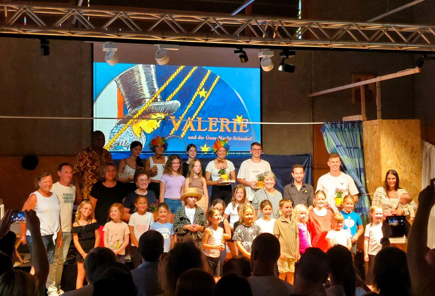Das bekannte Stück "Valerie und die Gute Nacht Schaukel" von Mira Lobe wurde mit den Kindern und dem Jungscharteam sowie einem Tanzpädagogen vor einem begeistertem Publikum musikalisch und tänzerisch aufgeführt. Es gab begeistertes Feedback und tosenden Applaus.