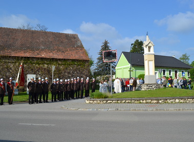 Gemeinsam mit Pfarrer Kolo feierten unsere FF-KameradInnen die Heilige Messe in unserer Grotte. Der anschließende Umzug führte uns um den Ort zum FF-Haus, wo das Frühschoppen stattfand.