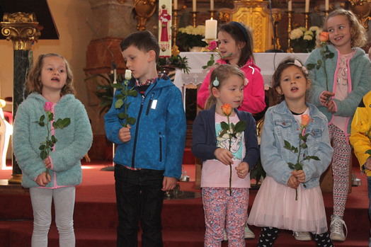 Am Sonntag den 14. Mai, Muttertag, wurde die Festmesse von Kindern und dem Jugendchor musikalisch umrahmt. Mit Freude und Begeisterung sangen und tanzten die Kinder zum Lied „Rückenwind“. Am Ende der heiligen Messe bekam jede Frau eine Rose. Vielen Dank fürs mitsingen und mitfeiern.