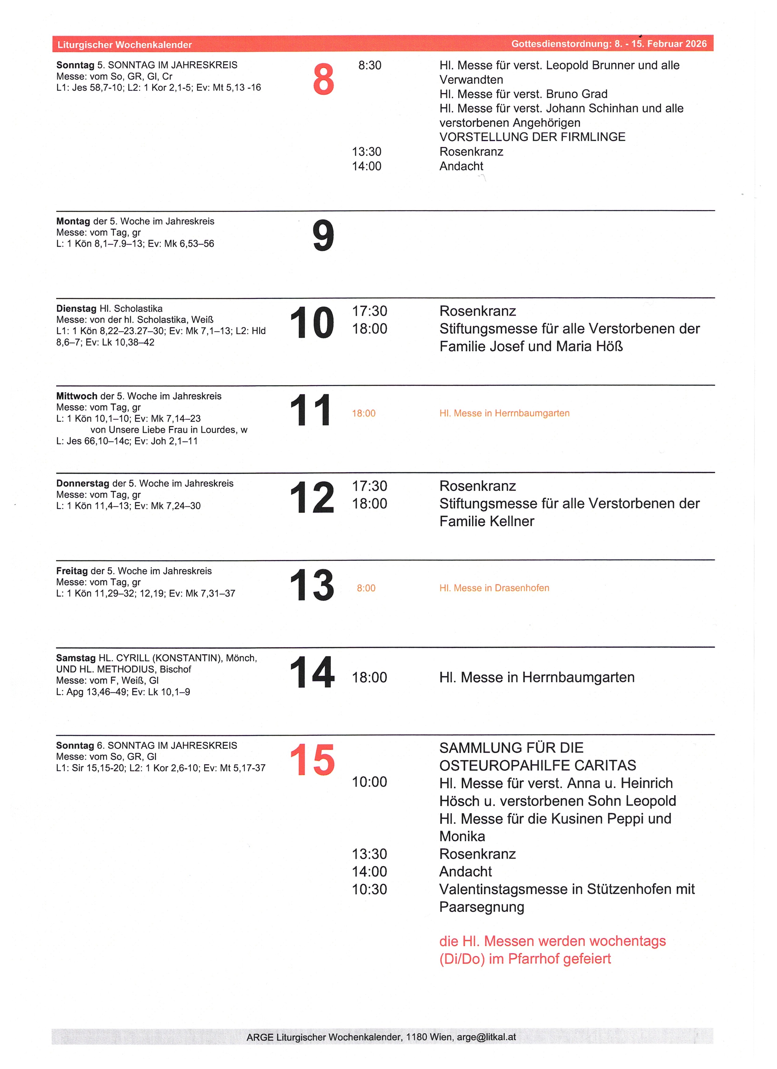 Namenstage Hl. Scholastika, Hl. Brun, Hl. Wilhelm der Große