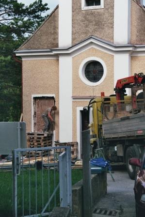 Die Fassade der Kirche ist in die Jahre gekommen. Die Kirche wird mit Hilfe vieler verschiedener Baufirmen außen komplett saniert. Auch Turmkreuz, Turmblech, Turmuhr und Dach werden überholt. Am 30. Oktober hält Bischofsvikar Rühringer eine Festmesse zum Abschluss der Außenrenovierung ab.