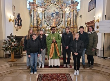 Heute war ein besonderer Tag für Kaplan Bernard Rabwoni – ein Tag der Freude, Dankbarkeit und Anerkennung. Die Pfarrgemeinde gratulierte Kaplan Bernard, der nicht nur mit Herz und Seele Priester ist, sondern nun auch mit Geist und Verstand den höchsten akademischen Grad in der Theologie errungen hat: den Doktortitel.