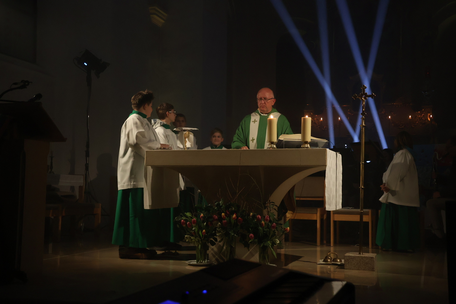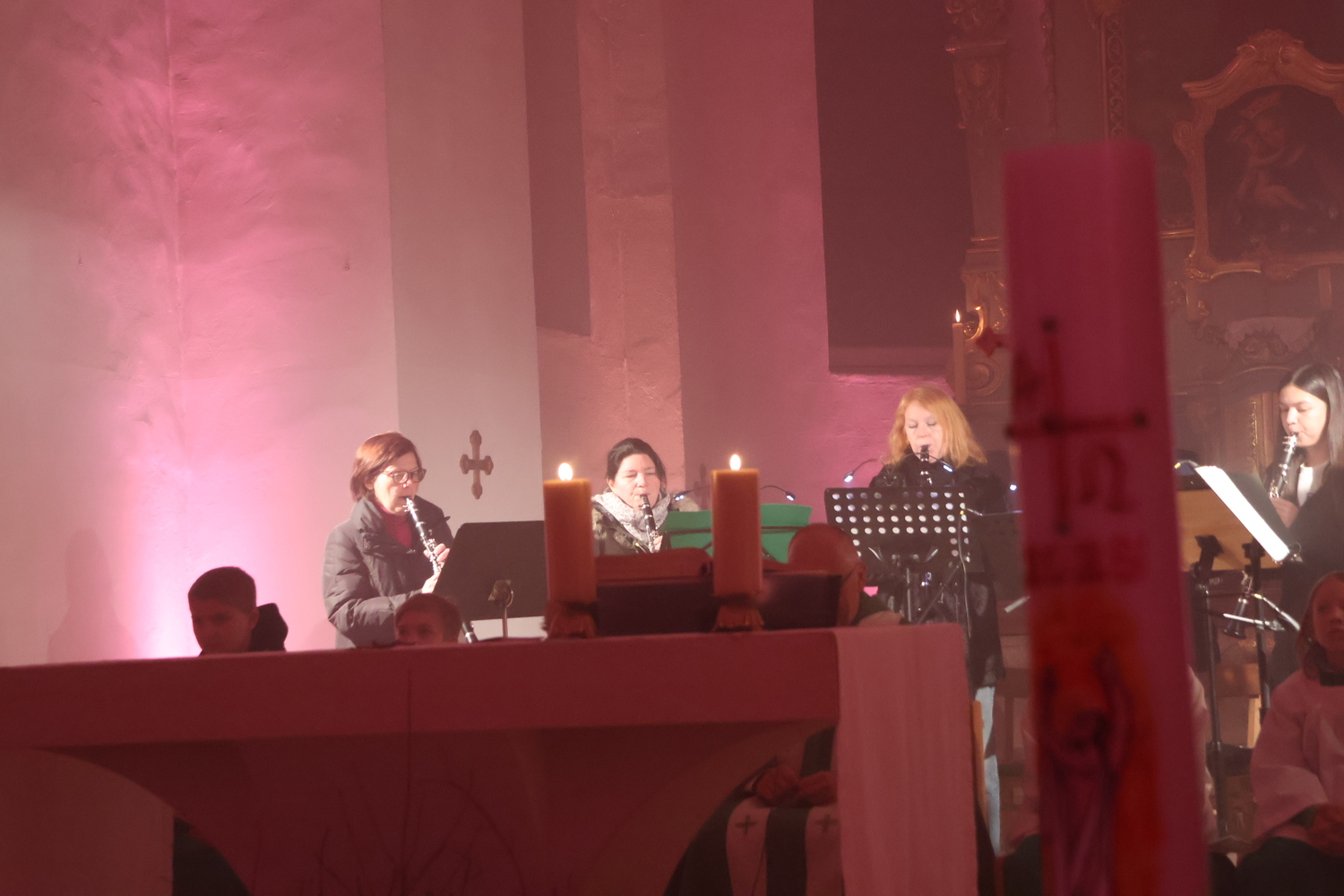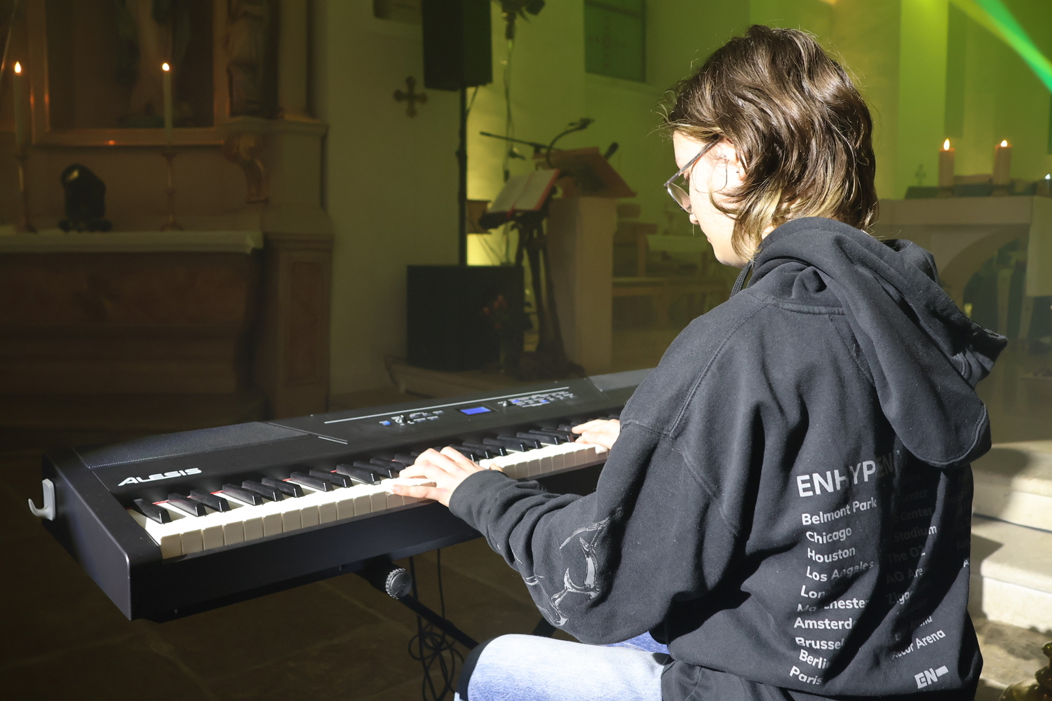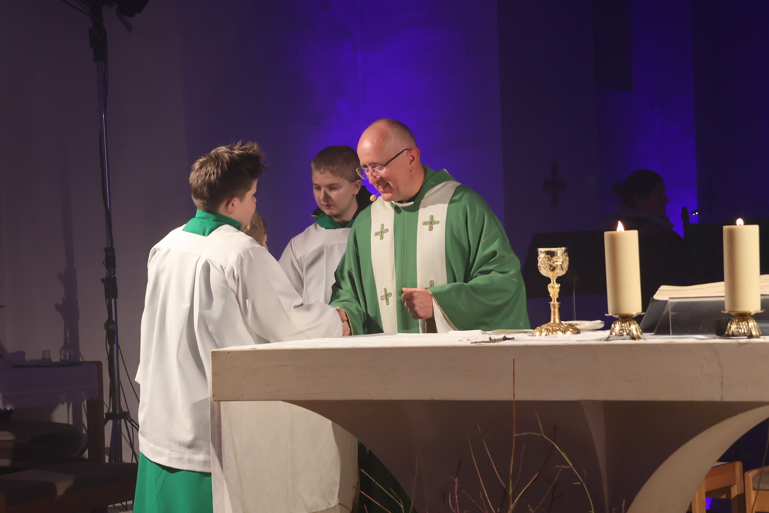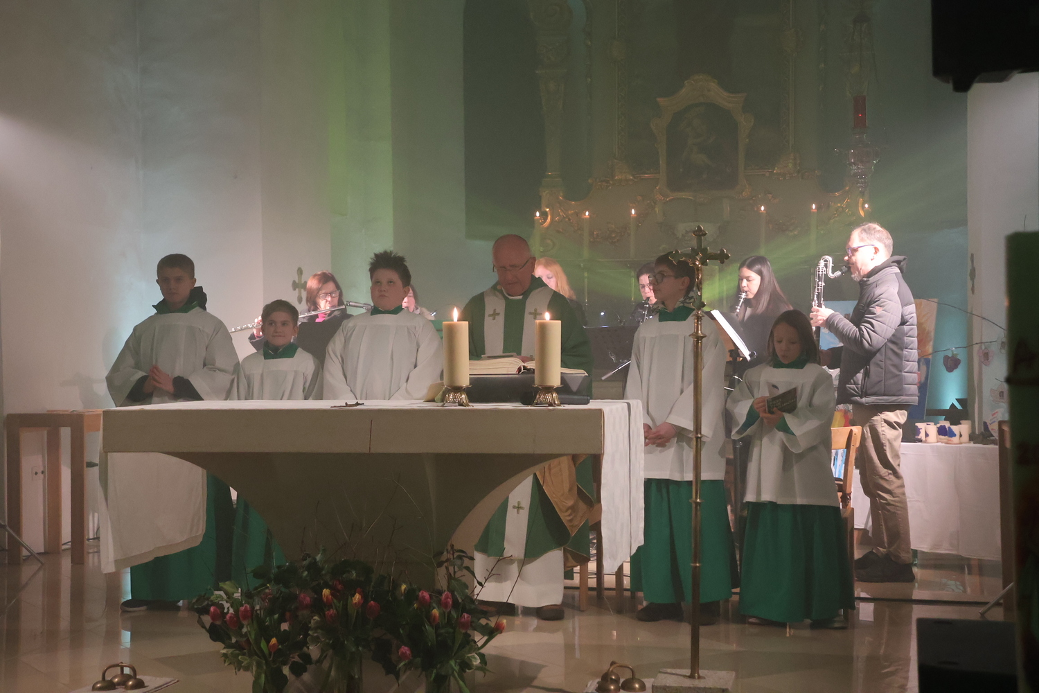 Die Kirche erstrahlte in beeindruckenden Lichteffekten, die eine außergewöhnliche Atmosphäre schufen und den Kirchenraum in ein neues Licht tauchten. Musikalisch wurde der Gottesdienst auf besondere Weise gestaltet: Bekannte Lieder der Kultband ABBA gaben der Feier einen modernen, lebendigen Rahmen und luden zum Zuhören, Mitschwingen und Mitfühlen ein.