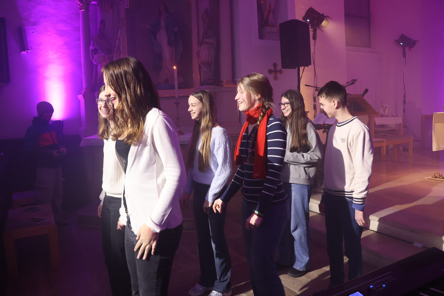 Ein weiterer Höhepunkt des Abends war die Tanzeinlage der Firmkandidatinnen und Firmkandidaten. Mit viel Engagement und Freude brachten sie Bewegung in die Kirche und setzten das Thema „Öffne dich!“ auch körperlich eindrucksvoll um.