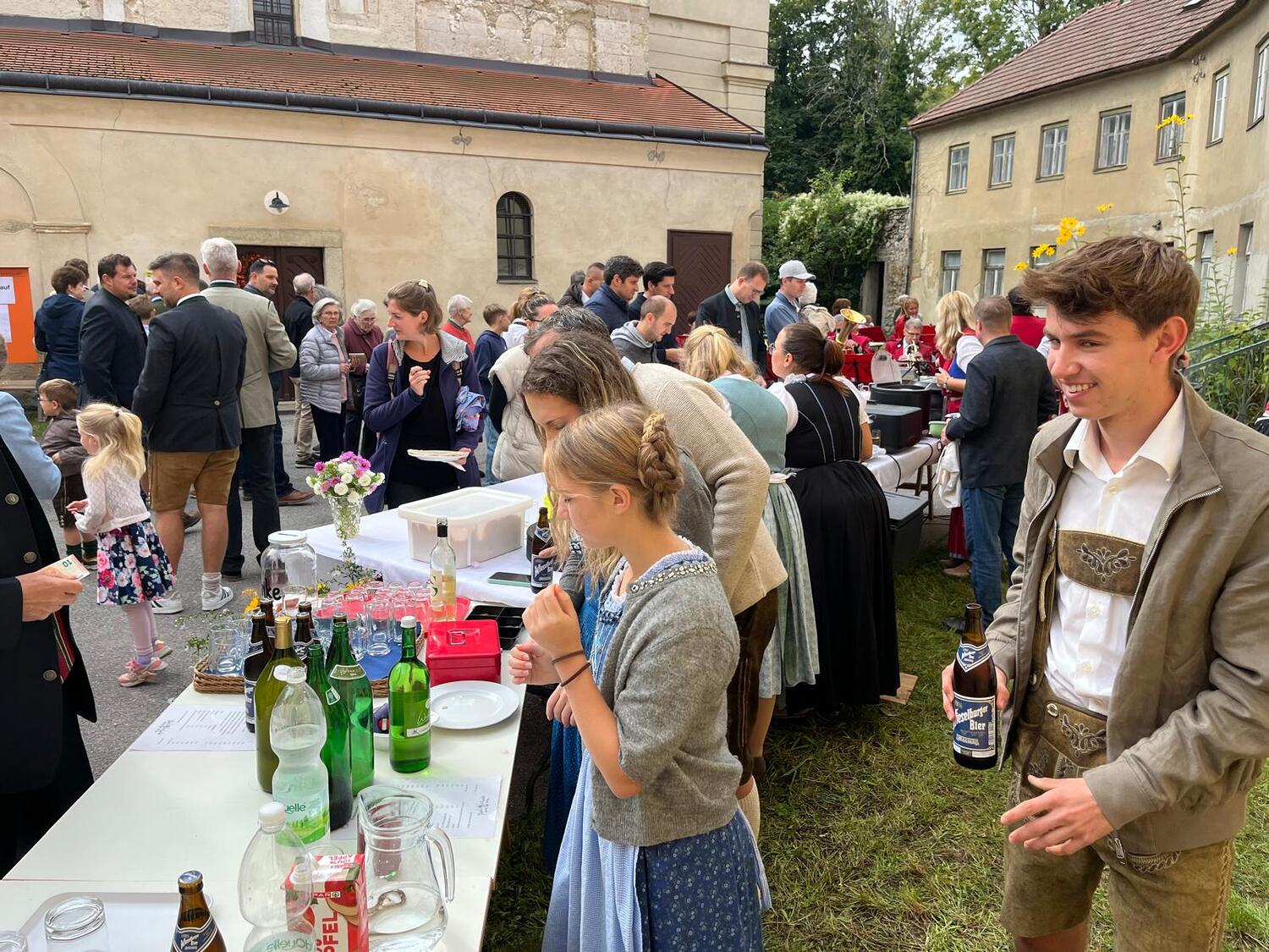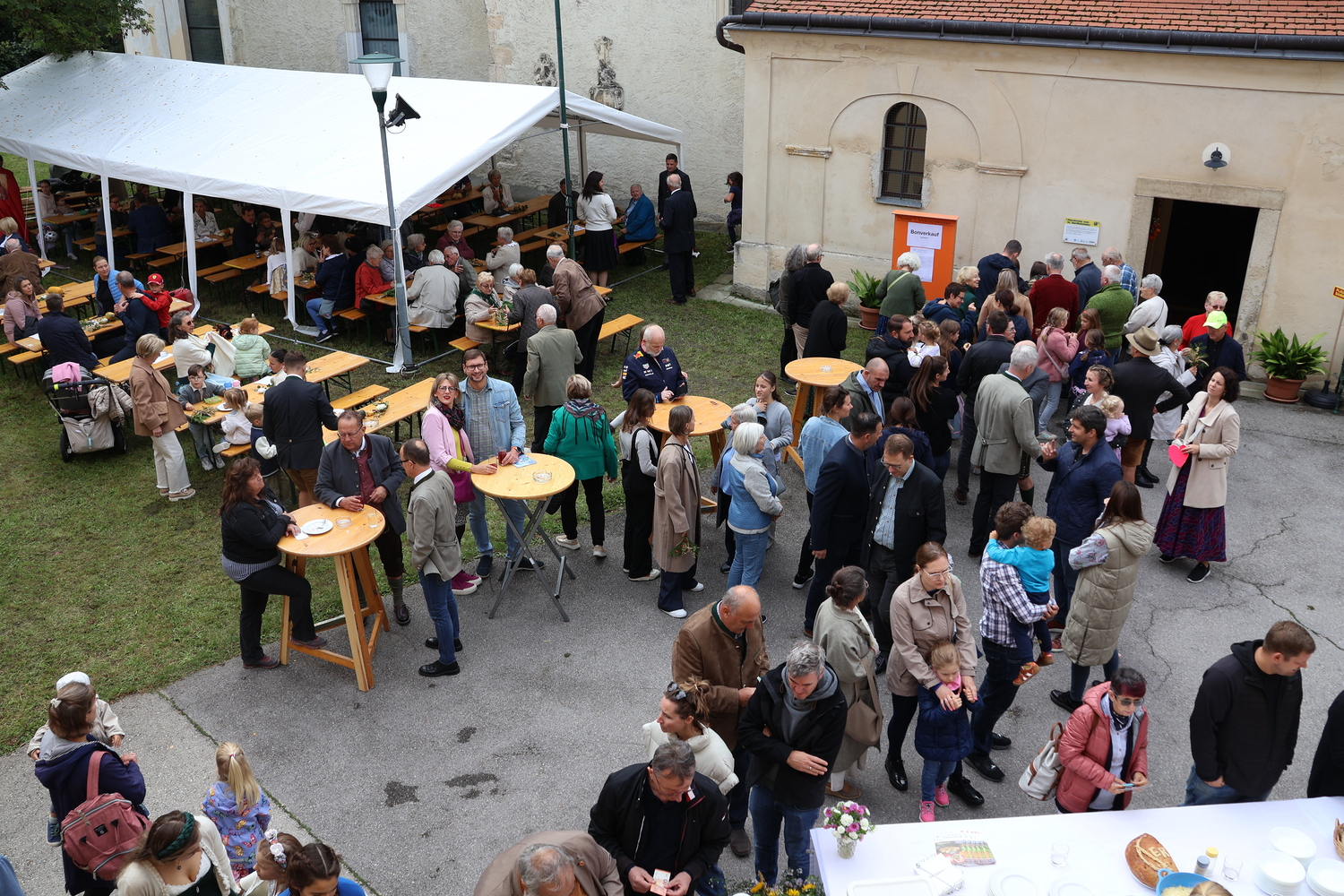 Beim anschließenden Pfarrfest wurden die Besucher kulinarisch verwöhnt: Die Jagdgesellschaft Unterwaltersdorf spendete köstliches Rehgulasch, und die Bäuerinnen bereiteten eine Vielzahl an traditionellen Erntedanksträußen. Für die festliche Stimmung sorgte die liebevoll gestaltete Bank-Dekoration des Kindergartens, während die Blumendamen der Pfarre die Kirche und den Pfarrhof schmückten.