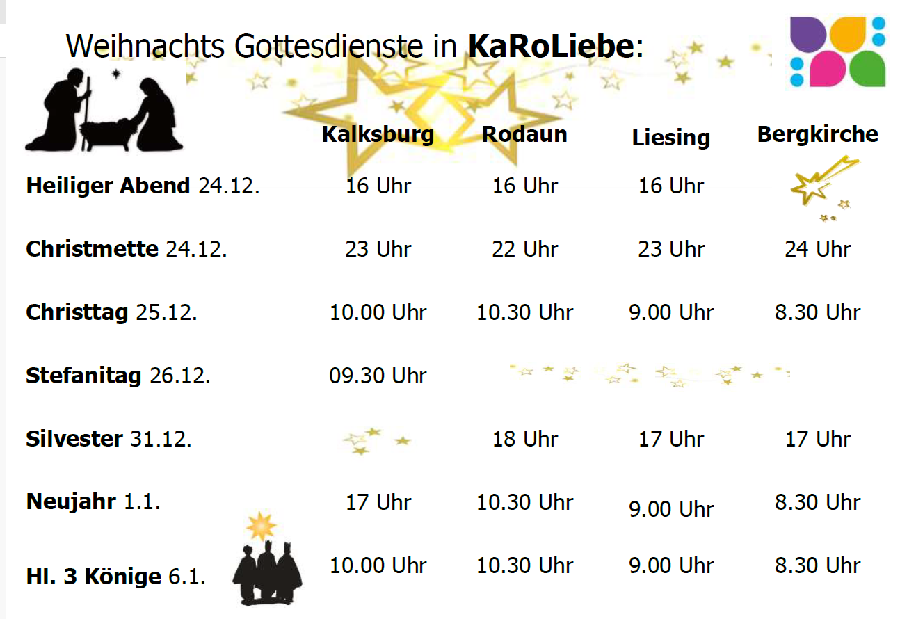 Alle Weihnachtsgottesdienste im Pfarrverband